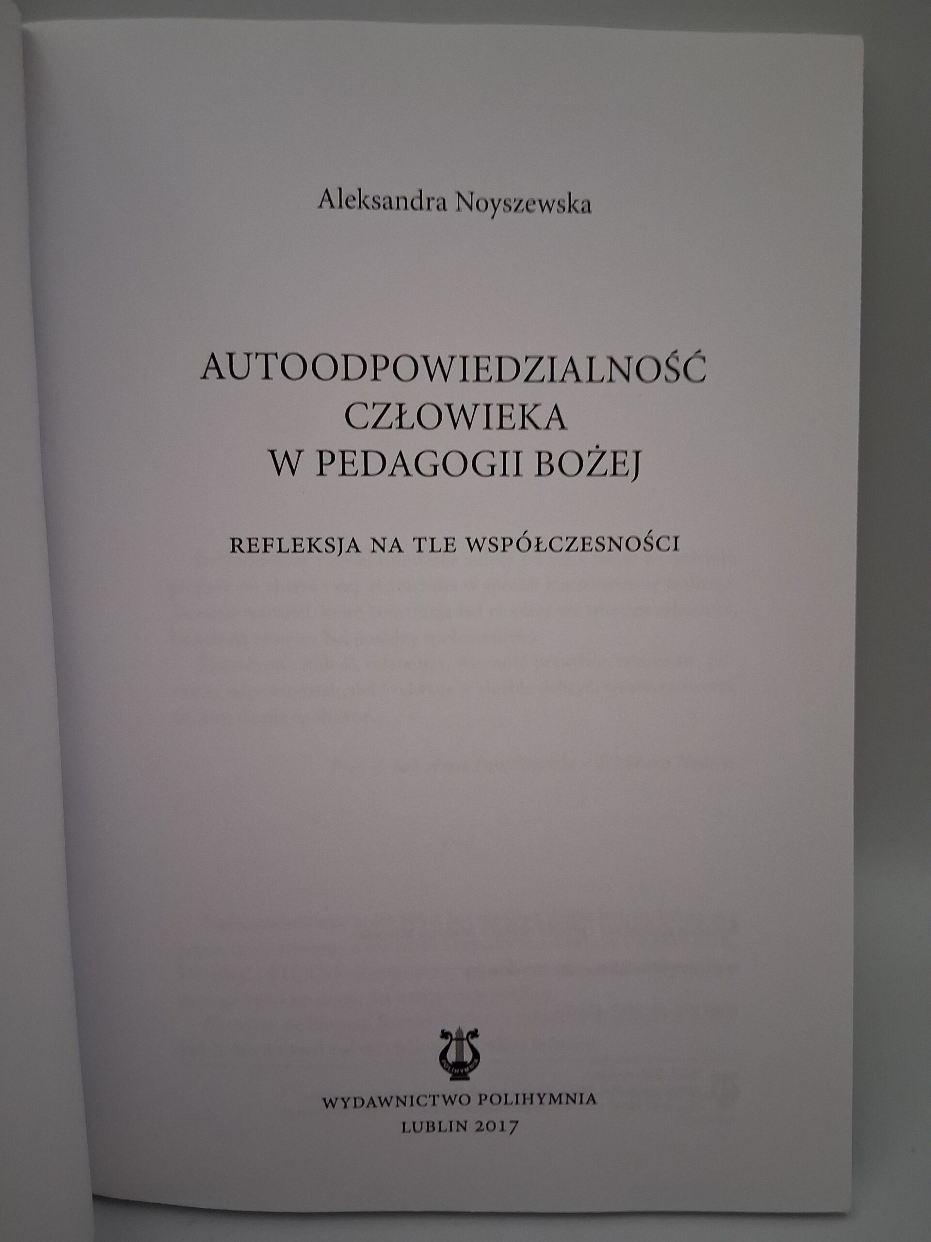 „Autoodpowiedzialność człowieka w pedagogii Bożej” to książka autorstwa Aleksandry Noyszewskiej, która zgłębia temat odpowiedzialności osobistej w kontekście wartości religijnych. Autorka analizuje, w jaki sposób pedagogia Boża wpływa na rozwój moralny i duchowy człowieka, podkreślając znaczenie osobistego zaangażowania w proces kształtowania charakteru. Książka jest cennym źródłem refleksji dla osób zainteresowanych etyką chrześcijańską oraz poszukujących głębszego zrozumienia relacji między wiarą a codziennym życiem.