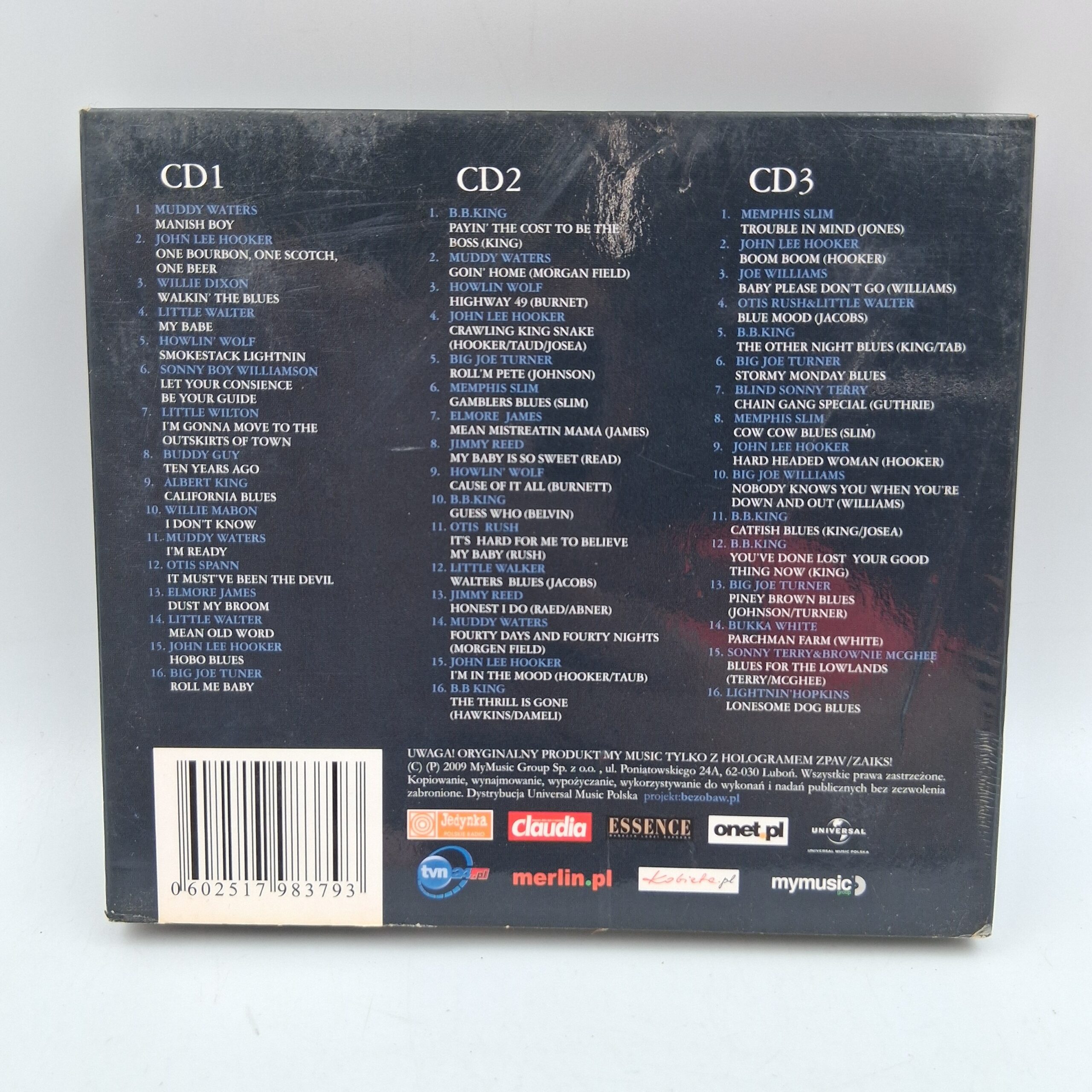 | Opis | 48 Blues Greats on 3CD. Zawiera utwory takich artystów jak Muddy Waters, Buddy Guy, John Lee Hooker, B.B. King, Big Joe Turner, Howlin' Wolf, Willie Dixon, Albert King, Memphis Slim, Elmore James, Otis Rush, Little Wilton. |