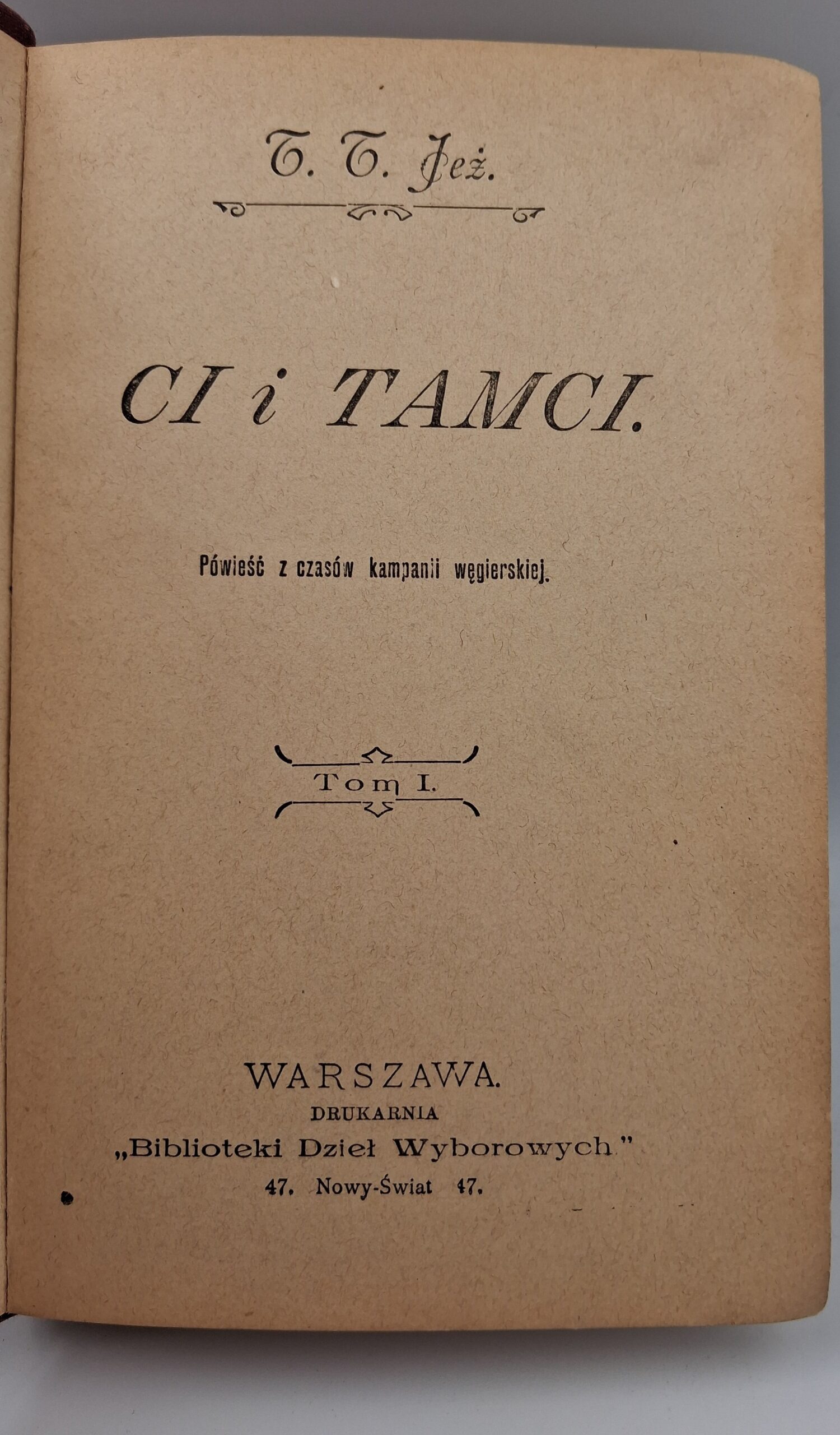 „Ci i tamci” to powieść historyczna autorstwa T. T. Jeża, osadzona w czasach kampanii węgierskiej. Książka przenosi czytelnika w realia XIX-wiecznej Europy, ukazując zmagania wojenne z perspektywy uczestników i świadków. Wielowymiarowe postaci, bogato skonstruowane tło historyczne oraz wartka akcja sprawiają, że jest to lektura zarówno pouczająca, jak i emocjonująca. Dzięki tej książce można zgłębić zawiłości polityczne i społeczne tamtego okresu.