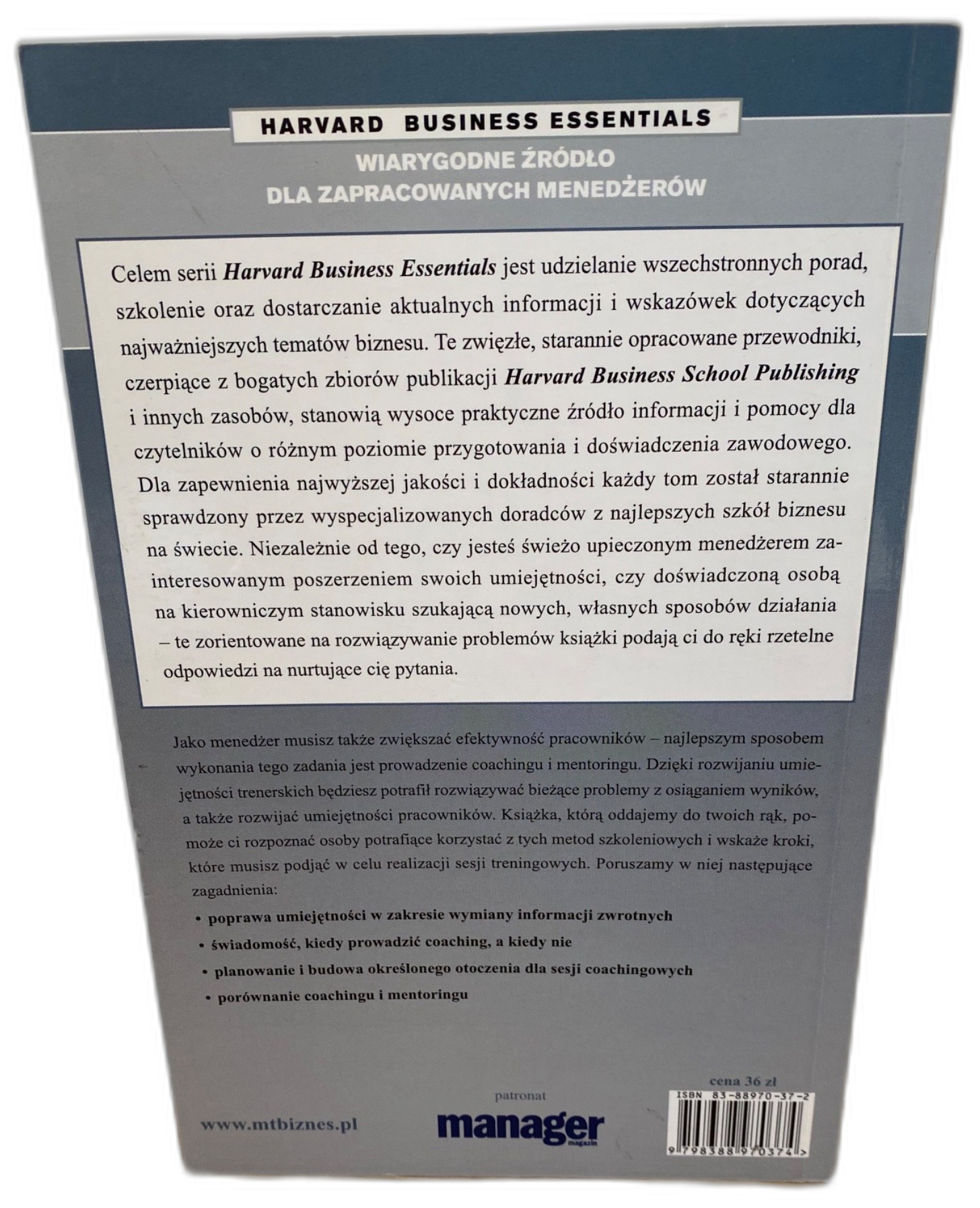 „Coaching i mentoring” z serii Harvard Business Essentials to praktyczny przewodnik dla menedżerów, liderów zespołów i osób rozwijających kompetencje przywódcze. Książka pokazuje, jak świadomie prowadzić rozmowy rozwojowe, wzmacniać motywację pracowników oraz przekuwać potencjał w mierzalne wyniki. Dostaniesz konkretne wskazówki, kiedy stosować coaching, a kiedy mentoring, jak stawiać cele, udzielać informacji zwrotnej i budować środowisko sprzyjające rozwojowi talentów. To lektura, która pomoże Ci szybciej diagnozować potrzeby zespołu, podnosić efektywność i poprawiać komunikację w codziennej pracy.