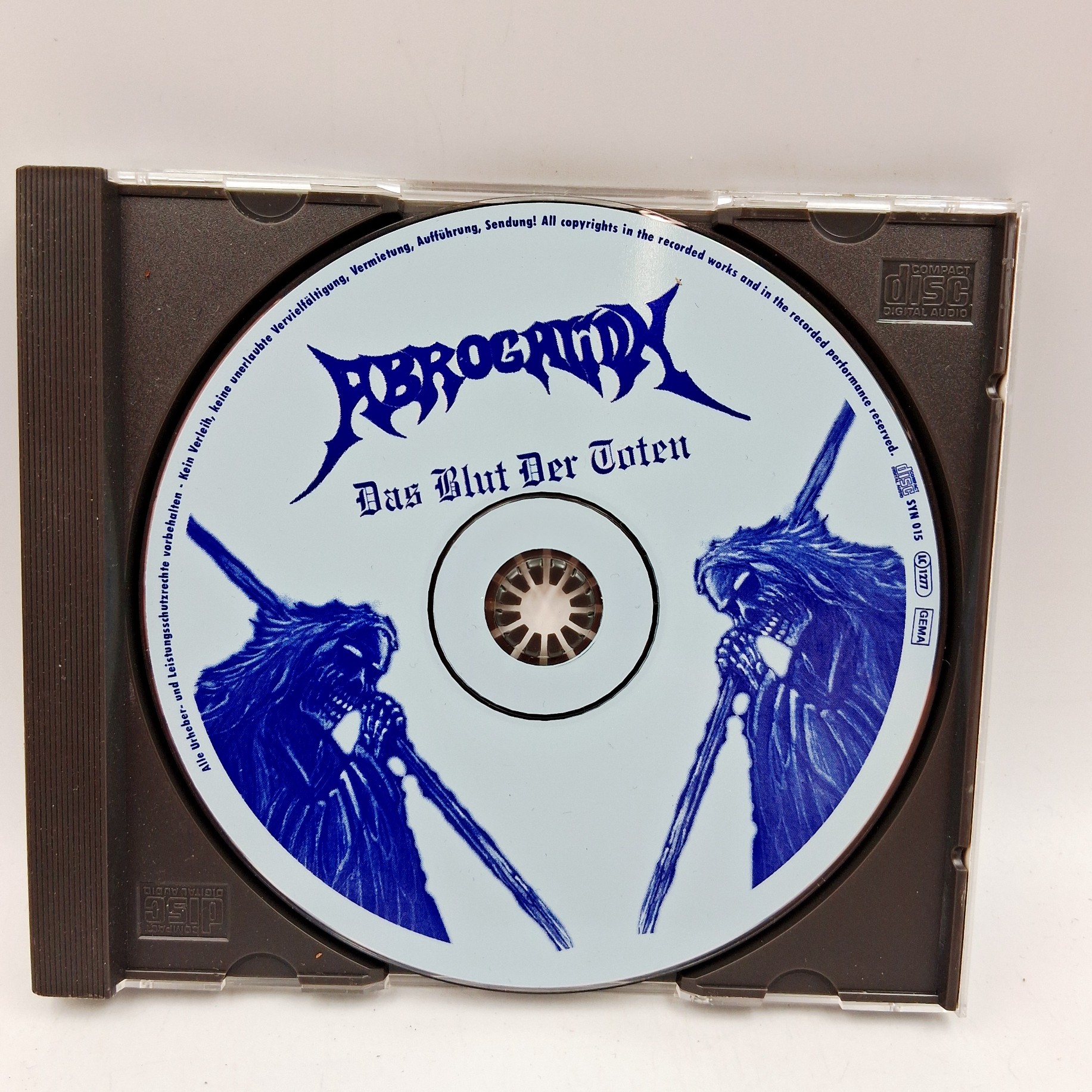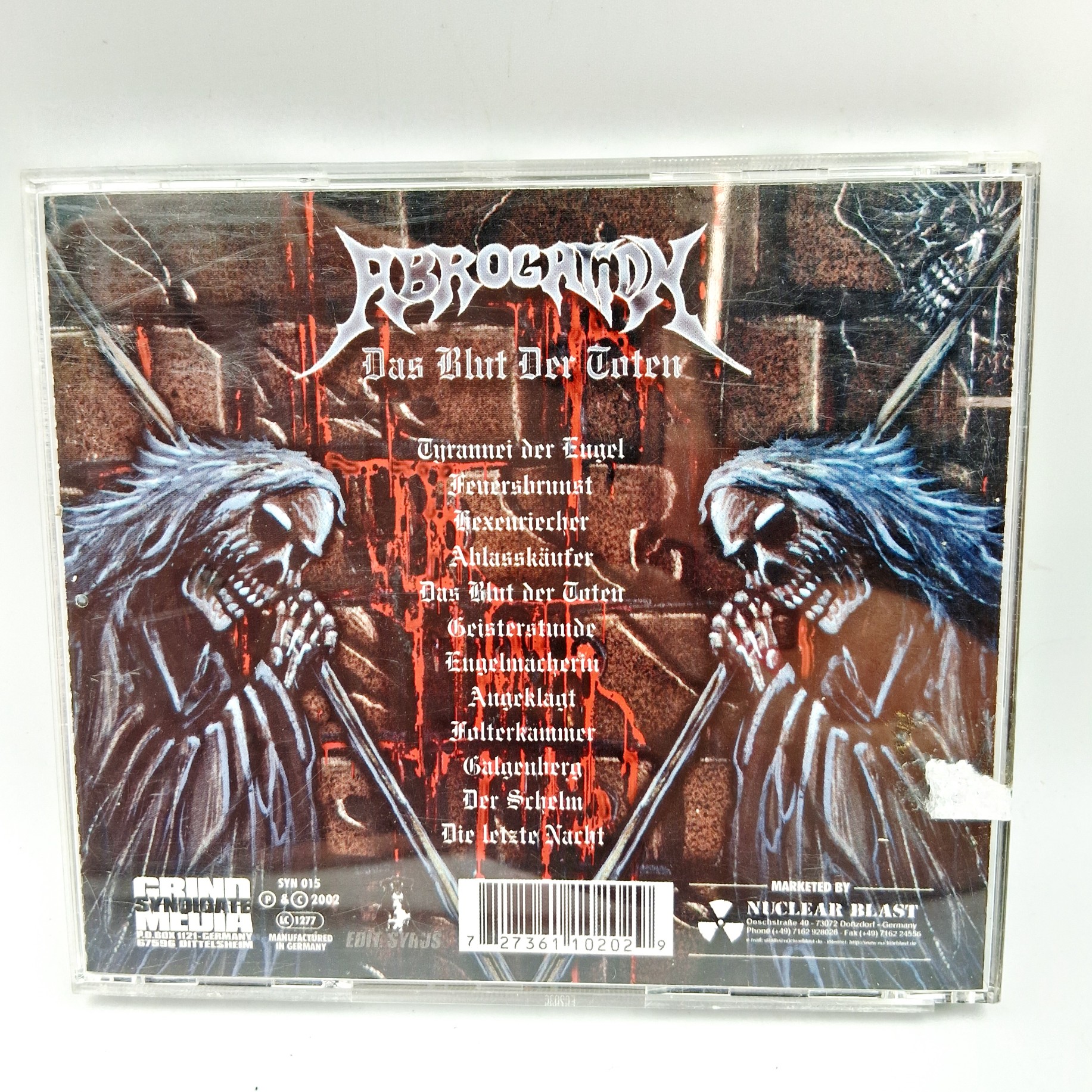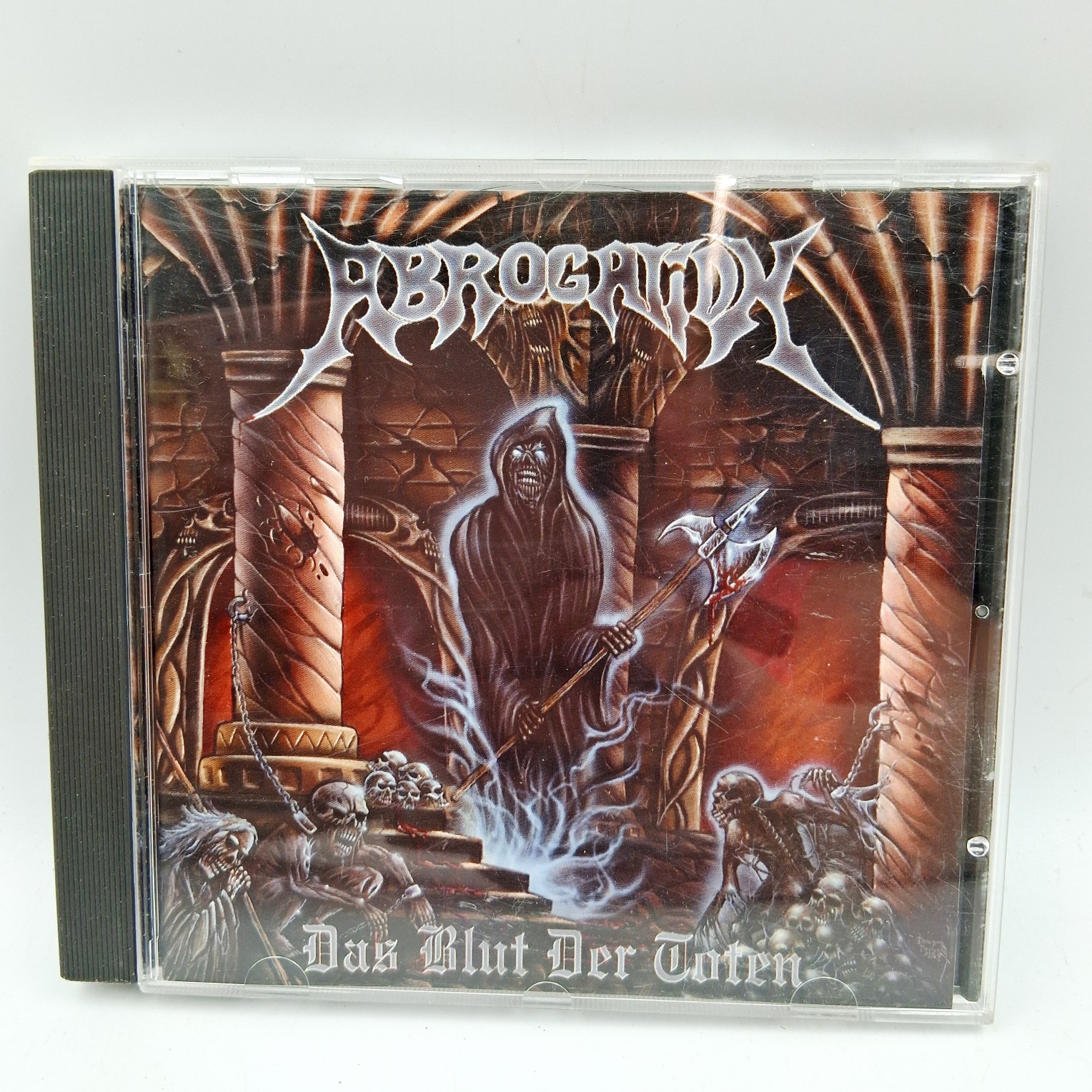„Das Blut Der Toten” to album zespołu Abrogation, który zanurza słuchacza w mrocznym i intensywnym klimacie niemieckiego metalu. Dzięki potężnym riffom i energetycznym wokalom, płyta dostarcza niezapomnianych wrażeń, przepełnionych atmosferą grozy i tajemniczości. Okładka albumu oddaje ciężką i apokaliptyczną tematykę muzyki, idealnie komponując się z brutalnymi dźwiękami zespołu. To płyta, która zaspokoi apetyt każdego fana gatunku.