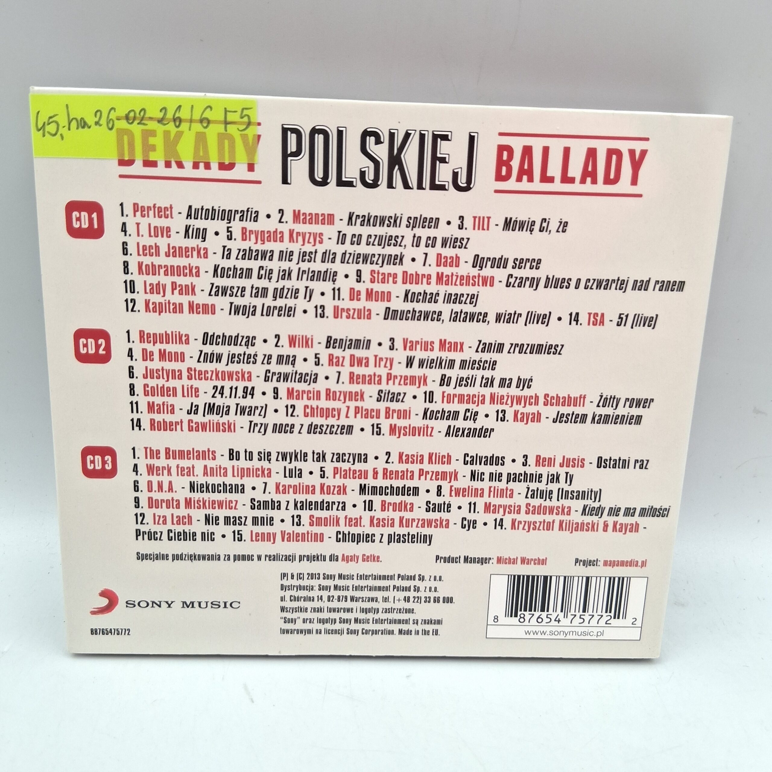 DEKADY POLSKIEJ BALLADY to wyjątkowa składanka muzyczna, która przenosi słuchacza w świat niezapomnianych polskich ballad. Zawiera starannie dobrane utwory, które ukazują piękno i emocjonalną głębię muzyki tworzonej na przestrzeni lat w Polsce. Idealny wybór dla miłośników nostalgicznych i refleksyjnych brzmień, który pozwoli na nowo odkryć magiczną atmosferę polskiej muzyki. Ten trzypłytowy zestaw to prawdziwa podróż przez dekady pełne muzycznych perełek.