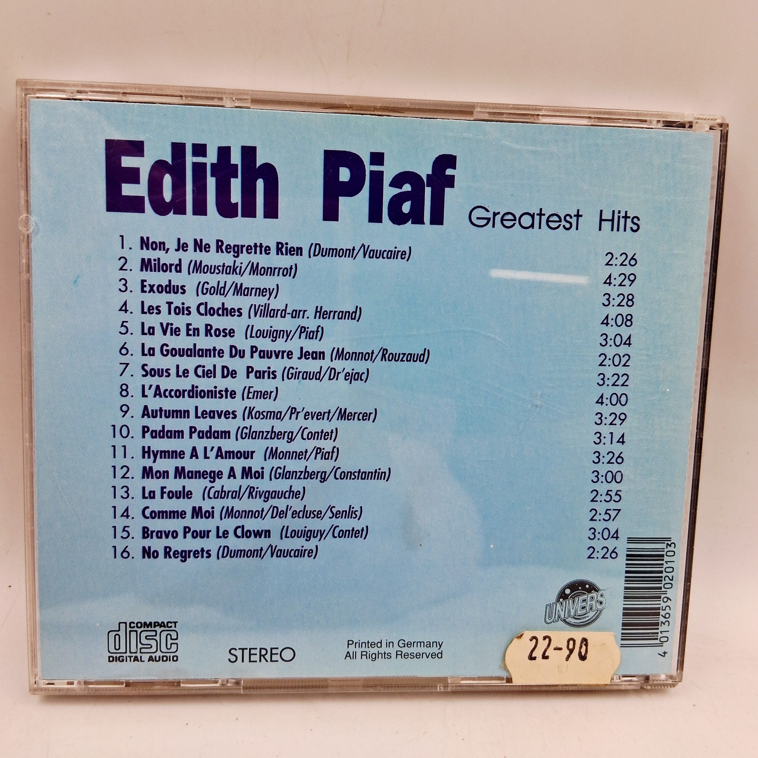 Edith Piaf Greatest Hits CD