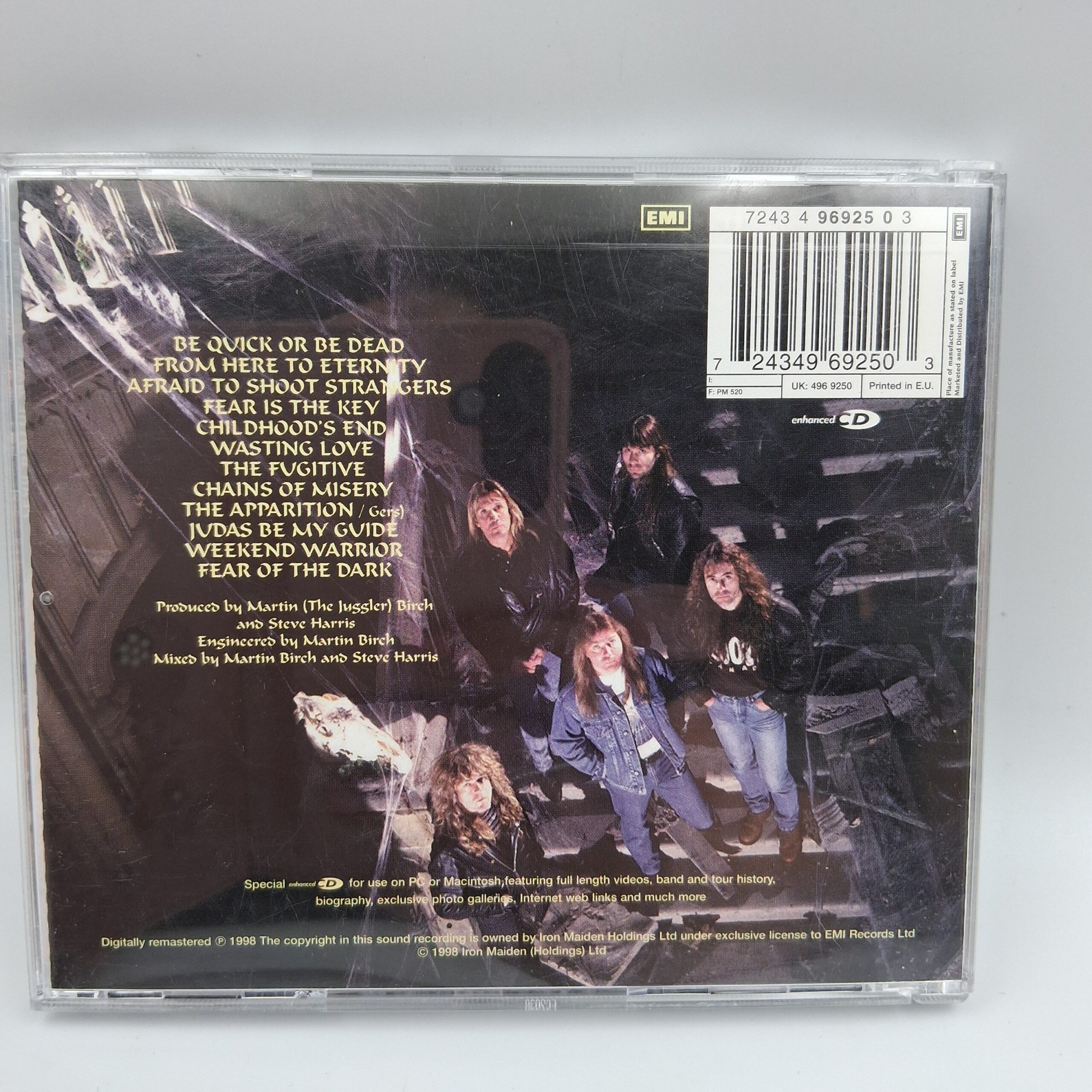 „Fear of the Dark” to legendarny album zespołu Iron Maiden, wydany w 1992 roku. Zawiera mieszankę dynamicznych utworów i epickich, rozbudowanych kompozycji, które zdobyły uznanie fanów heavy metalu na całym świecie. Tytułowy utwór „Fear of the Dark” stał się jednym z kultowych kawałków wykonywanych na koncertach zespołu, zachwycając energią i teatralnością. Album wyróżnia się charakterystycznym brzmieniem Iron Maiden, którym zespół zdołał podbić serca milionów słuchaczy.
