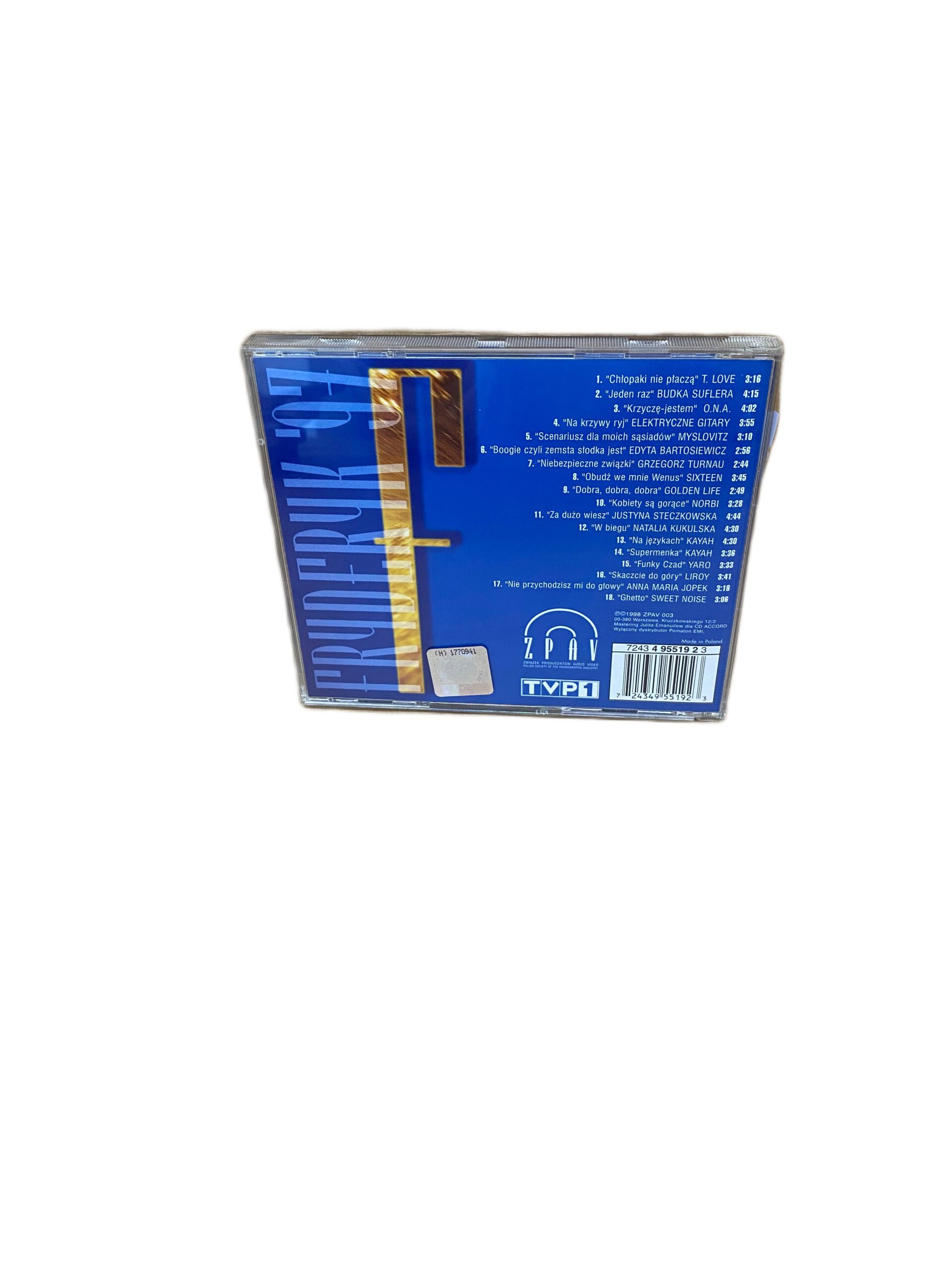 „Fryderyk ’97” to wyjątkowa kompilacja, która gromadzi największe hity polskiej sceny muzycznej lat 90. Na płycie znajdziemy utwory uznanych artystów, takich jak T.Love, Budka Suflera, czy Edyta Bartosiewicz. Jest to nie tylko świetna okazja do przypomnienia sobie klasyków, ale także do odkrycia różnorodności polskiej muzyki tamtych lat. Doskonały wybór dla miłośników polskiego rocka i popu, chcących odświeżyć swoje playlisty o niezapomniane brzmienia.