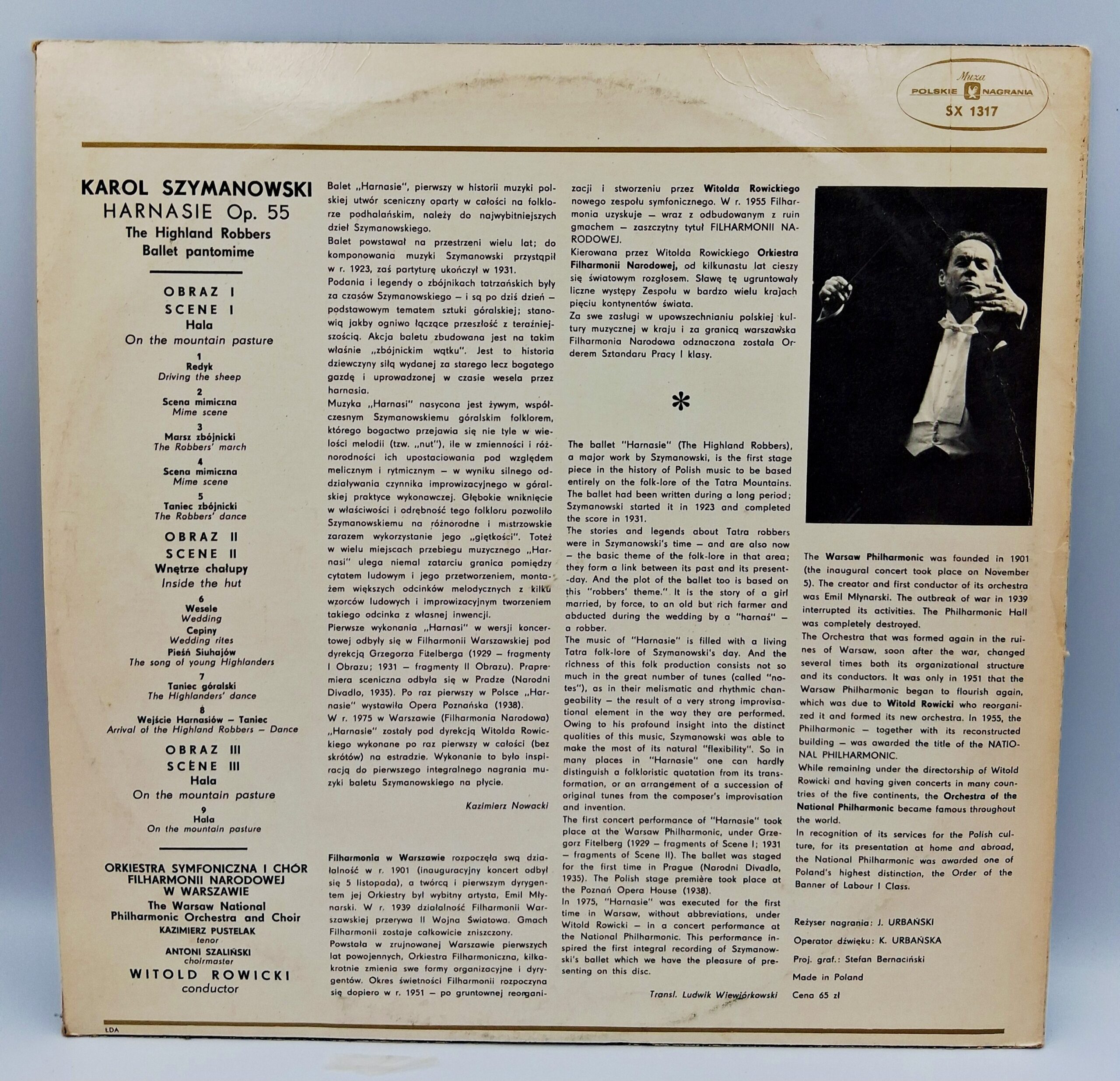 Płyta winylowa „Harnasie” to zapis baletu pantomimicznego Karola Szymanowskiego, wykonany przez Orkiestrę i Chór Filharmonii Narodowej w Warszawie pod batutą Witolda Rowickiego. Kompozycja inspirowana jest góralską kulturą i legendami o tatrzańskich zbójnikach – harnasiach. Muzyka łączy elementy ludowe z nowoczesnym brzmieniem, tworząc wyjątkowe dzieło pełne emocji i dynamiki. Idealna dla miłośników polskiej muzyki klasycznej i eksperymentalnych form artystycznych.