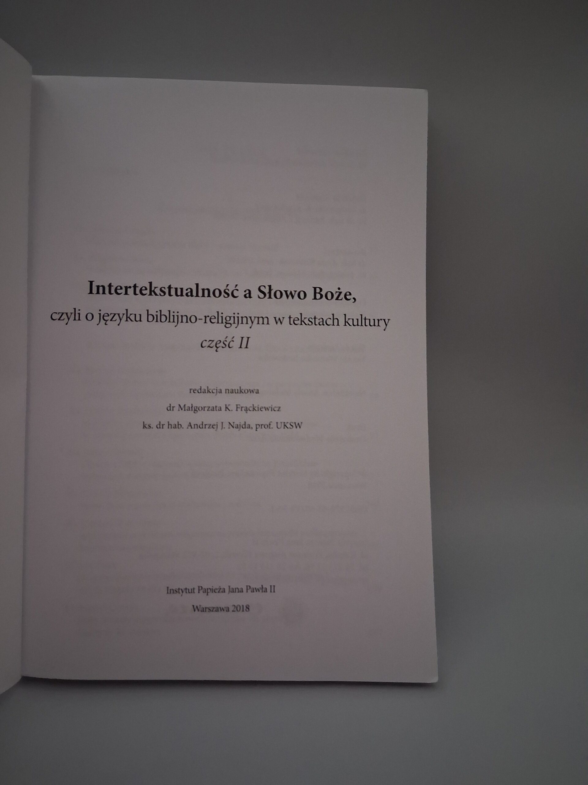 | Tytuł | Intertekstualność a Słowo Boże, czyli o języku biblijno-religijnym w tekstach kultury, część II |