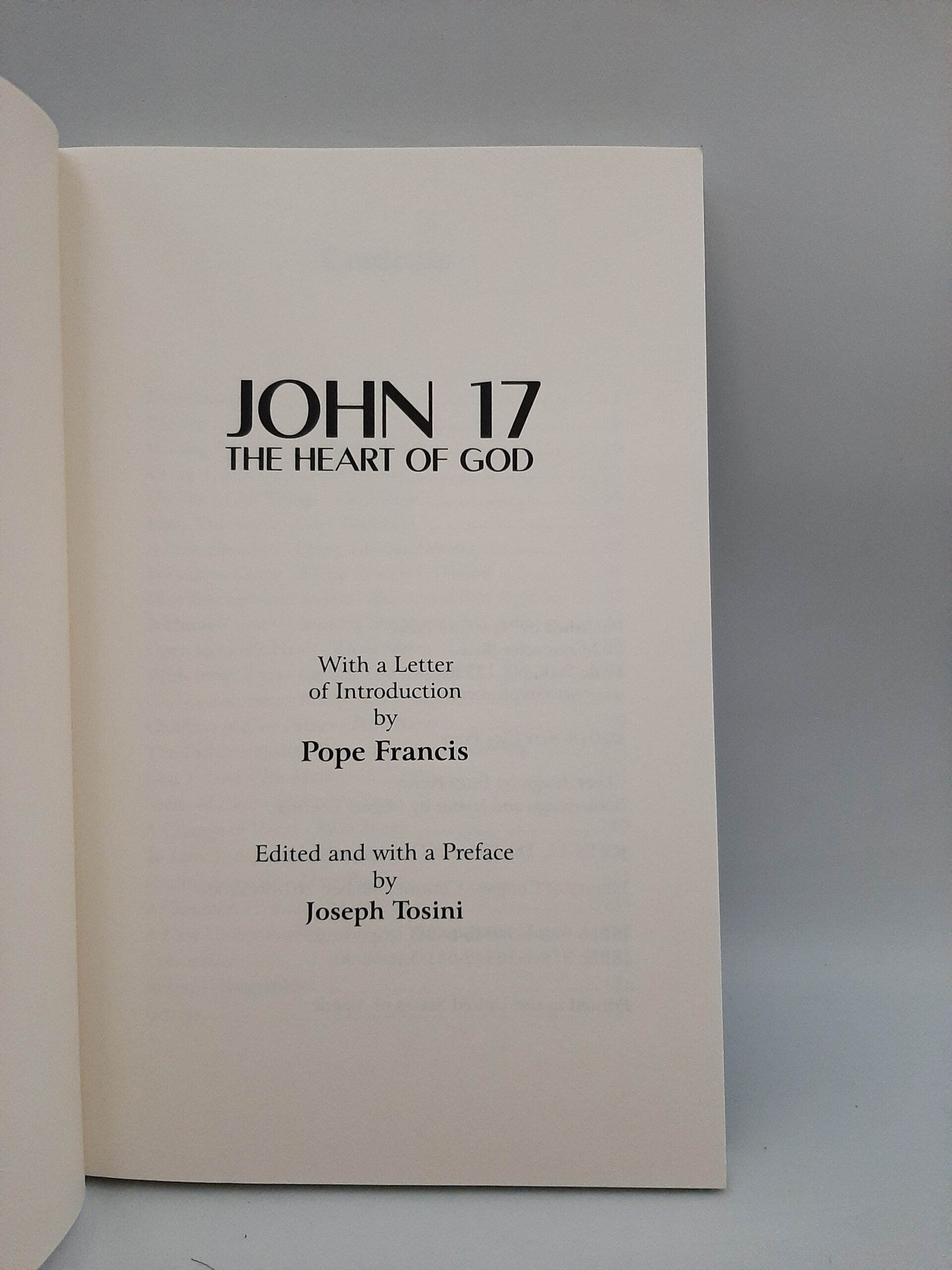 „John 17: The Heart of God” to poruszająca książka opisująca spotkania ludzi z różnych wyznań chrześcijańskich, którzy odnaleźli wspólnotę i inspirację w dialogu z Papieżem Franciszkiem. Publikacja ukazuje historie, które przyczyniły się do zbudowania ruchu duchowego znanego jako John 17. Dzieło przedstawia świadectwa jedności i przyjaźni, podkreślając głębokie przesłanie ekumenizmu i współdziałania ponad podziałami.