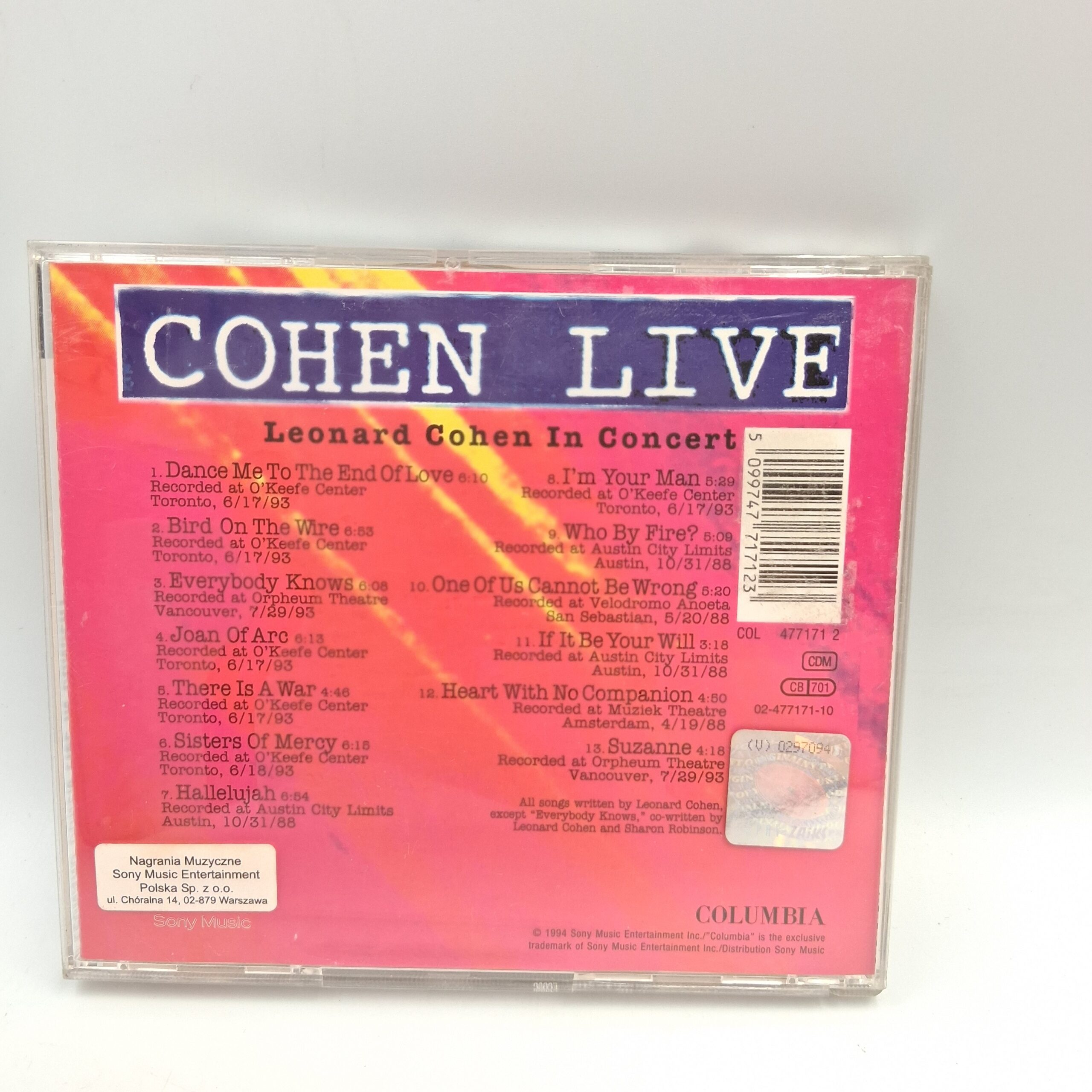 | Opis | Album koncertowy Leonarda Cohena, zawierający nagrania z koncertów z lat 1988 i 1993. |