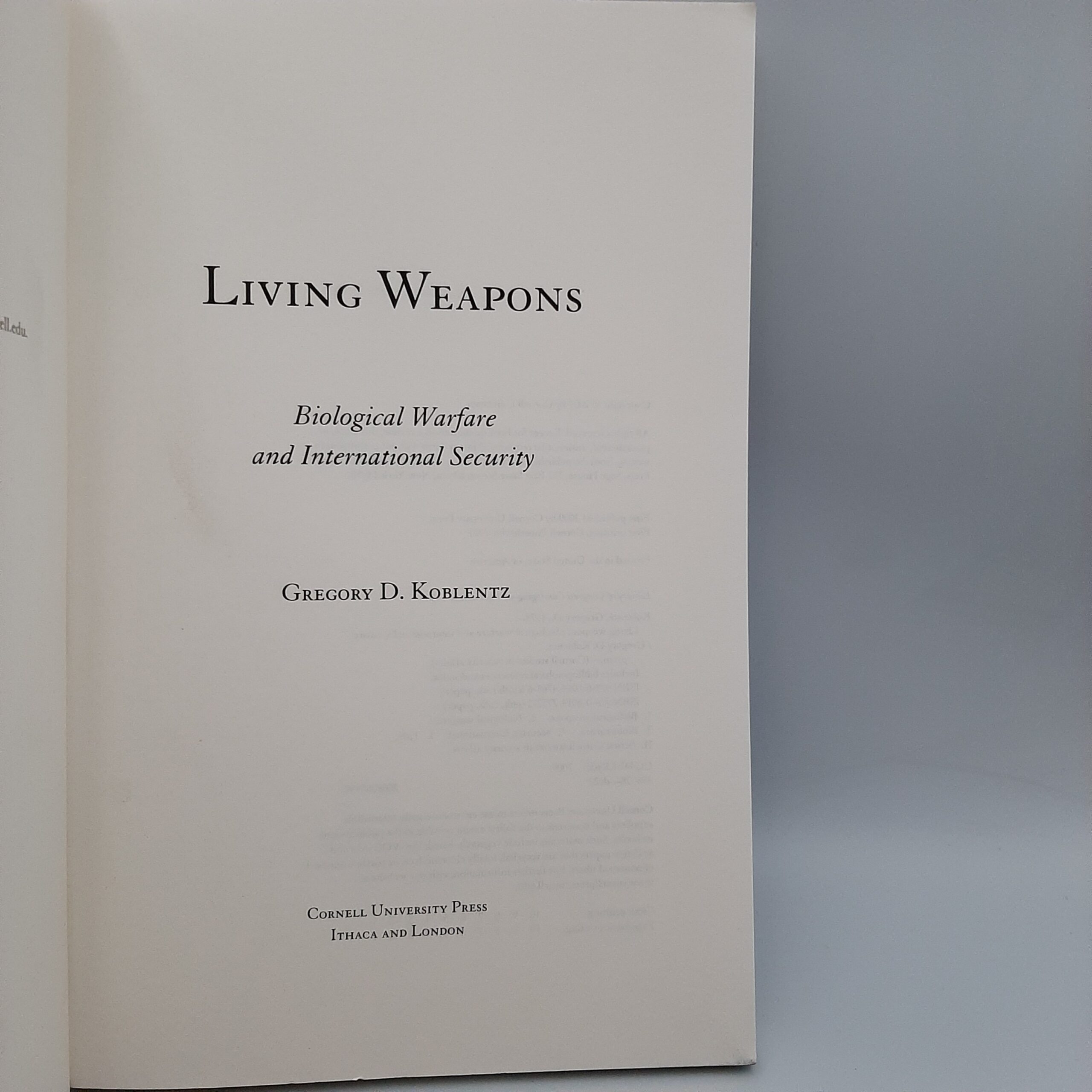 Living Weapons: Biological Warfare and International Security Gregory D. Koblentz