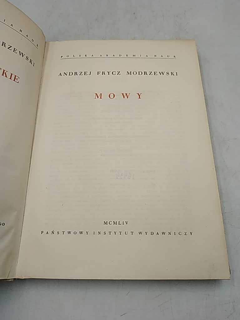 Andrzej Frycz Modrzewski, wybitny polski myśliciel renesansowy, w swoim dziele „Mowy” przedstawia głęboką analizę społeczeństwa swoich czasów. Wydana po raz pierwszy w 1954 roku książka w twardym oprawie liczy 226 stron. W tej używanej kopii, okładka wykazuje drobne naderwania i zabrudzenia, natomiast stan kartek jest bardzo dobry. Pozycja obowiązkowa dla pasjonatów historii i literatury.