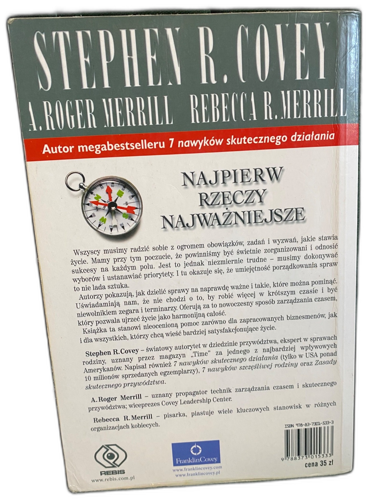 „Najpierw rzeczy najważniejsze” to praktyczny poradnik, który pomoże Ci odzyskać kontrolę nad czasem i energią – bez życia w ciągłym pośpiechu. Stephen R. Covey wraz z A. Rogerem Merrillem i Rebeccą R. Merrill pokazują, jak odróżniać to, co pilne, od tego, co naprawdę ważne, oraz jak budować plan dnia wokół priorytetów, wartości i długofalowych celów. Dzięki temu łatwiej uporządkujesz obowiązki w pracy, skuteczniej zorganizujesz życie rodzinne i zyskasz więcej przestrzeni na rzeczy, które dają satysfakcję.