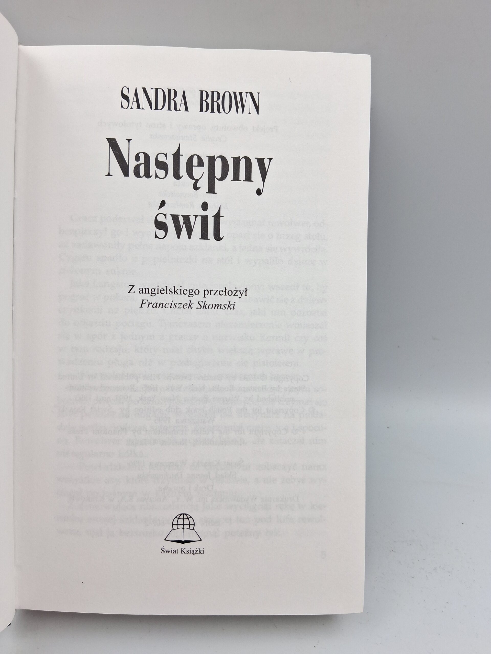 „Następny świt” Sandry Brown to wciągająca powieść romansowa, która łączy w sobie namiętność i tajemnicę. Autorka tworzy pełen emocji świat, w którym bohaterowie muszą zmierzyć się z wyzwaniami miłości i przeznaczenia. Historia uwodzi czytelnika zawirowaniami fabuły oraz głębokim portretem psychologicznym postaci, sprawiając, że trudno oderwać się od lektury aż do samego końca.