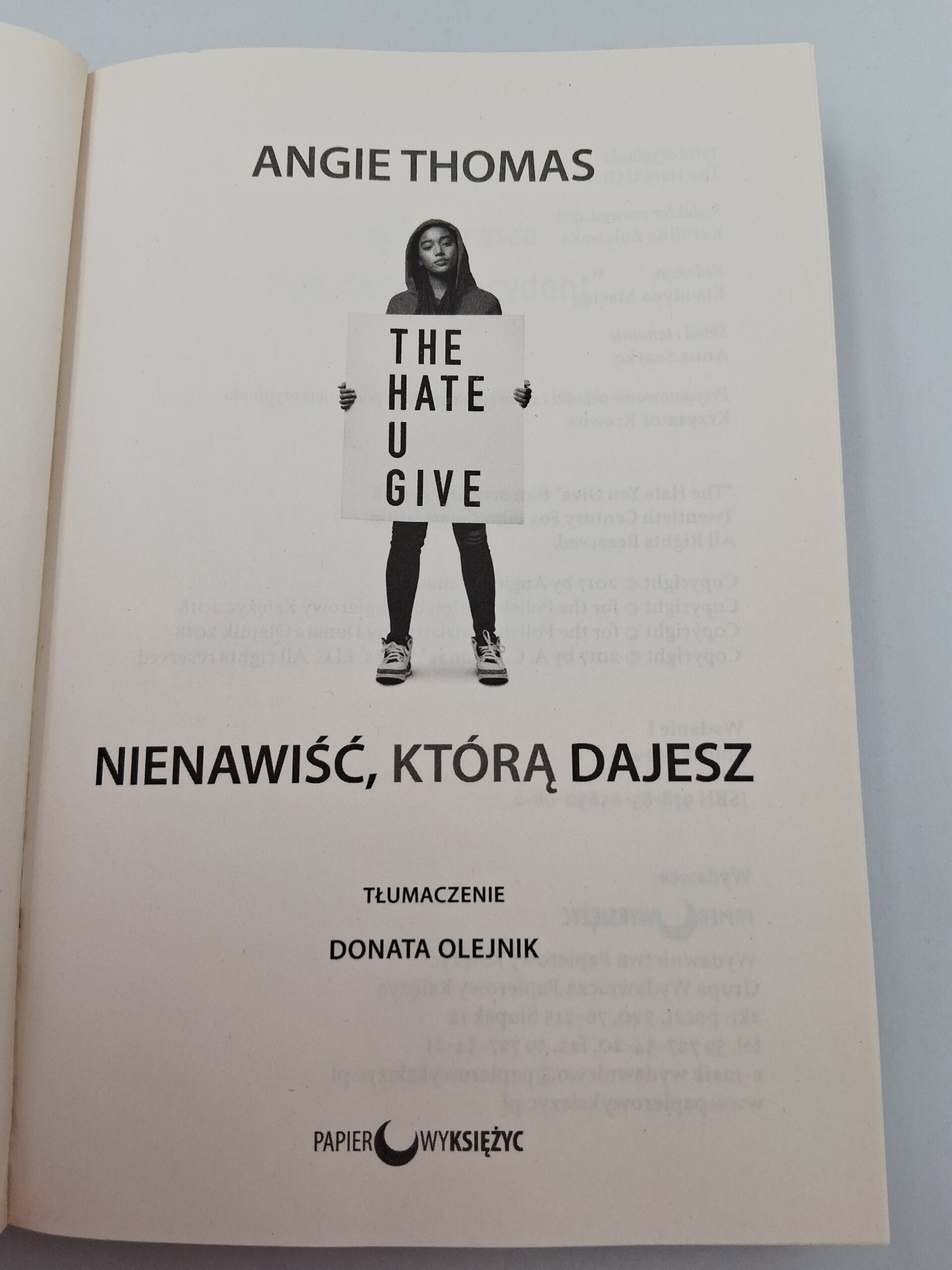 „Nienawiść, którą dajesz” autorstwa Angie Thomas to poruszająca opowieść o młodej dziewczynie, która staje w obliczu trudnych wyborów po tym, jak jej przyjaciel zostaje zastrzelony przez policję. Książka bada tematy tożsamości, społecznych niesprawiedliwości i odwagi cywilnej, łącząc osobiste doświadczenia z szerokim kontekstem społecznym. Dzięki emocjonującemu stylowi i realistycznym postaciom, dzieło rzuca światło na istotne kwestie dyskryminacji i walki o sprawiedliwość. To powieść, która inspiruje do refleksji i działania.