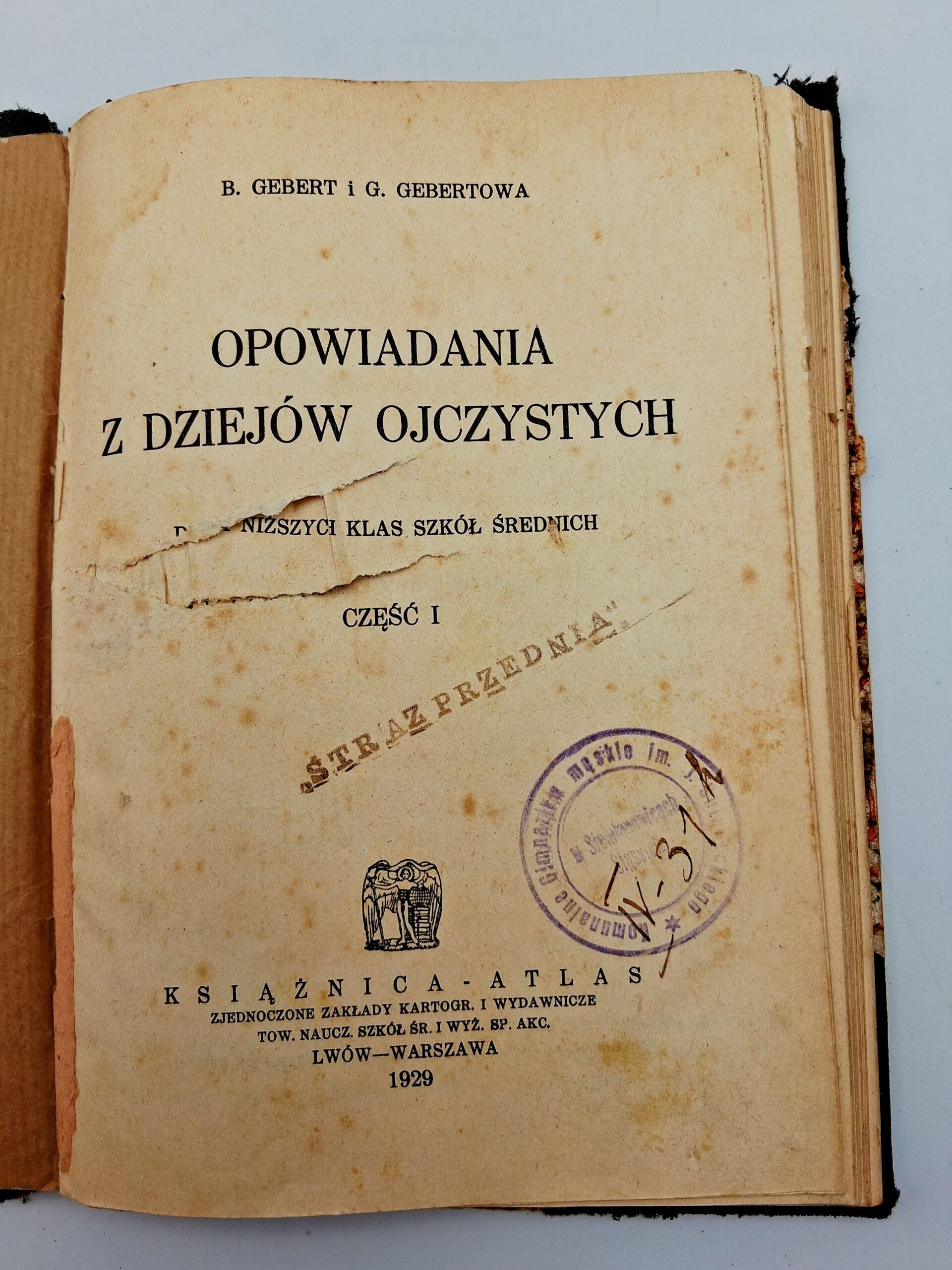 „Opowiadania z dziejów ojczystych” to podręcznik historyczny przeznaczony dla młodszych klas szkół średnich, napisany przez B. Geberta i G. Gebertową. Wydany w 1929 roku, stanowi część serii opowieści edukacyjnych, które w prosty i przystępny sposób przybliżają uczniom wydarzenia z historii Polski. Książka jest bogato ilustrowana i zawiera wiele interesujących anegdot historycznych, które pomagają młodzieży zrozumieć i zapamiętać kluczowe momenty z dziejów ojczystych.