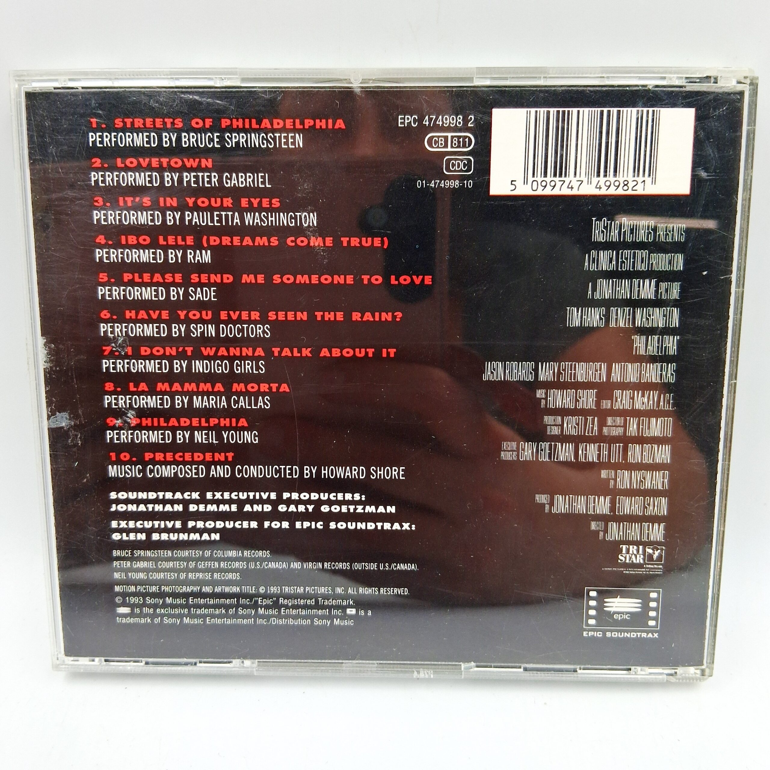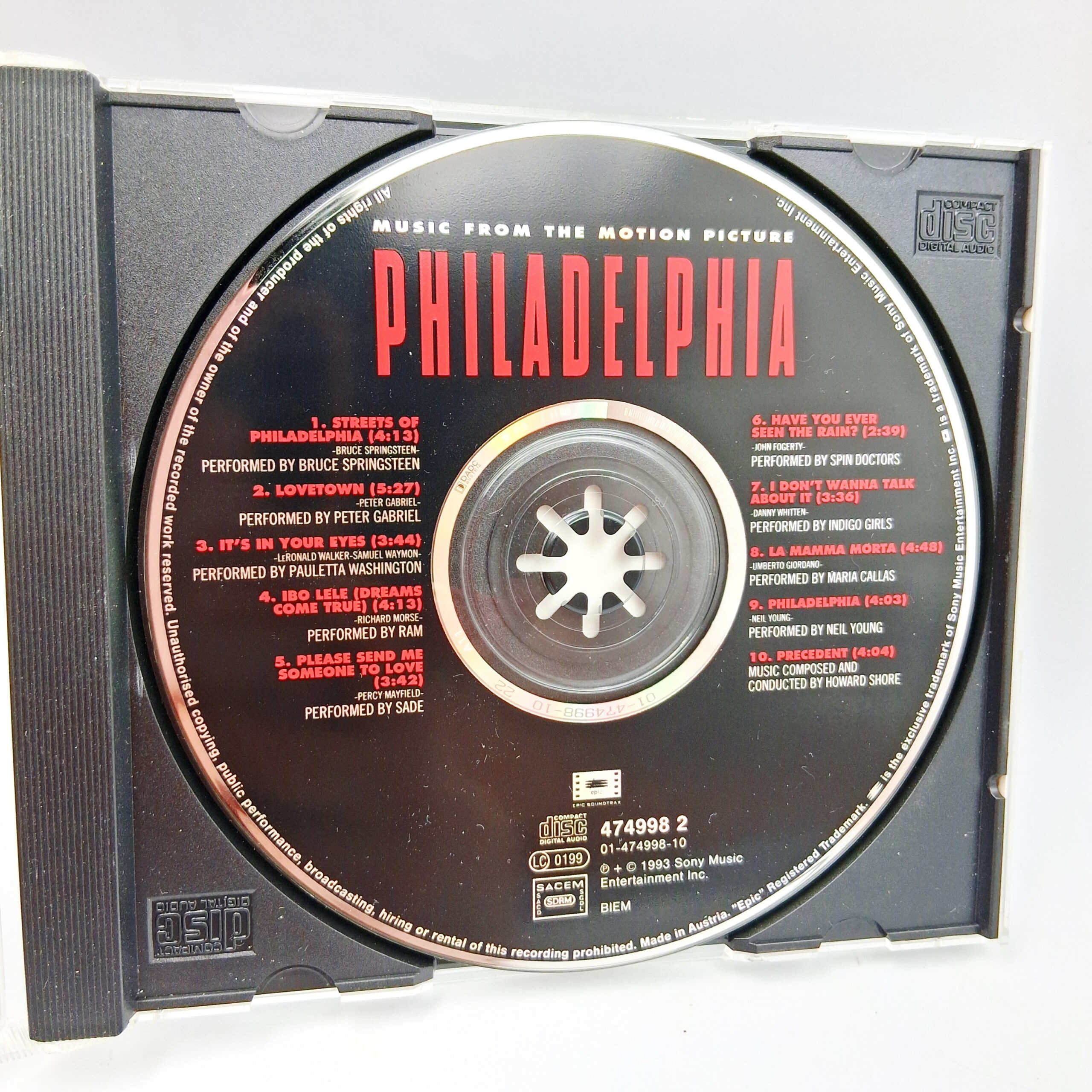 | Opis | ścieżka dźwiękowa z filmu 'Philadelphia' zawierająca utwory takich artystów jak Bruce Springsteen, Neil Young, Sade, Peter Gabriel i inni. |