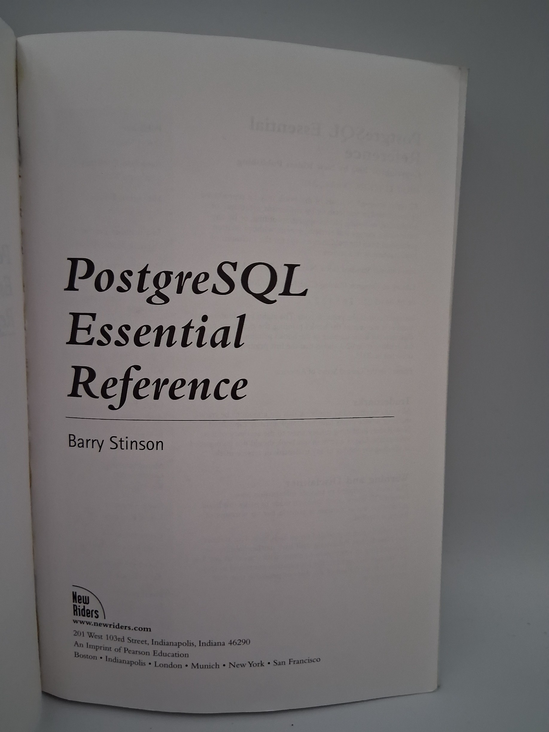 „PostgreSQL Essential Reference” autorstwa Barry’ego Stinsona jest podręcznikiem referencyjnym dla programistów i administratorów systemów, którzy znają już podstawowe koncepcje baz danych SQL, ale potrzebują jasnej i zwięzłej dokumentacji specyficznej dla PostgreSQL.