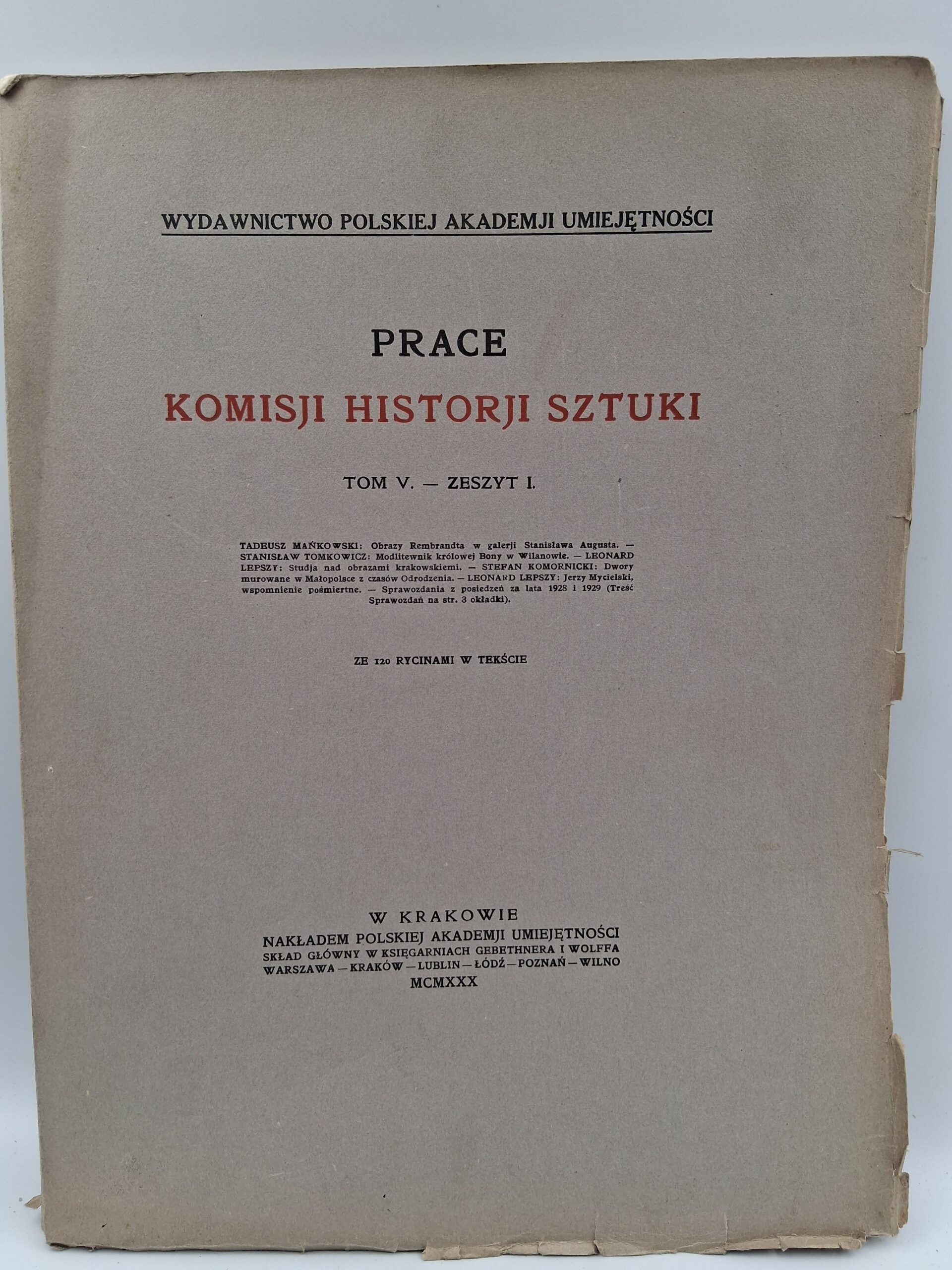 PRACE KOMISJI HISTORJI SZTUKI TOM V. – ZESZYT I