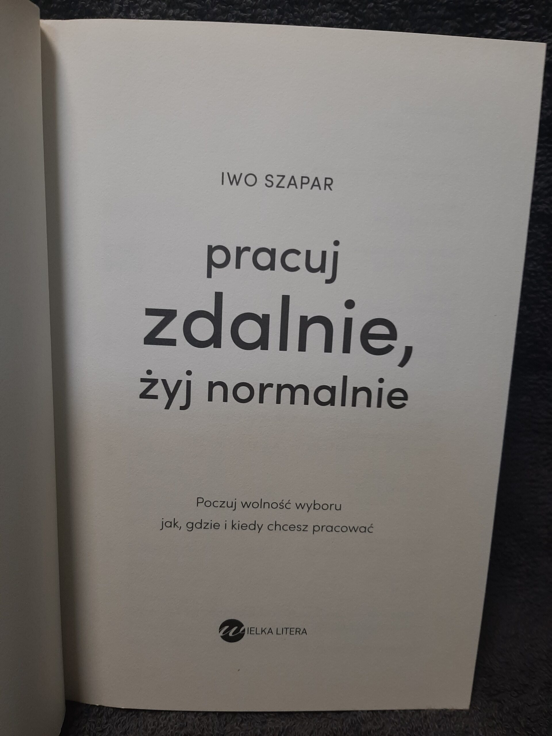 Książka „Pracuj zdalnie, żyj normalnie” autorstwa Iwo Szapara to przewodnik dla osób pragnących harmonijnie łączyć życie zawodowe z prywatnym, pracując z dowolnego miejsca. Autor dzieli się praktycznymi wskazówkami i strategiami, które pomogą efektywnie zarządzać czasem i zadaniami. Książka inspiruje do przejęcia kontroli nad własnym życiem zawodowym, czerpania radości z pracy oraz odnalezienia równowagi między obowiązkami a odpoczynkiem.