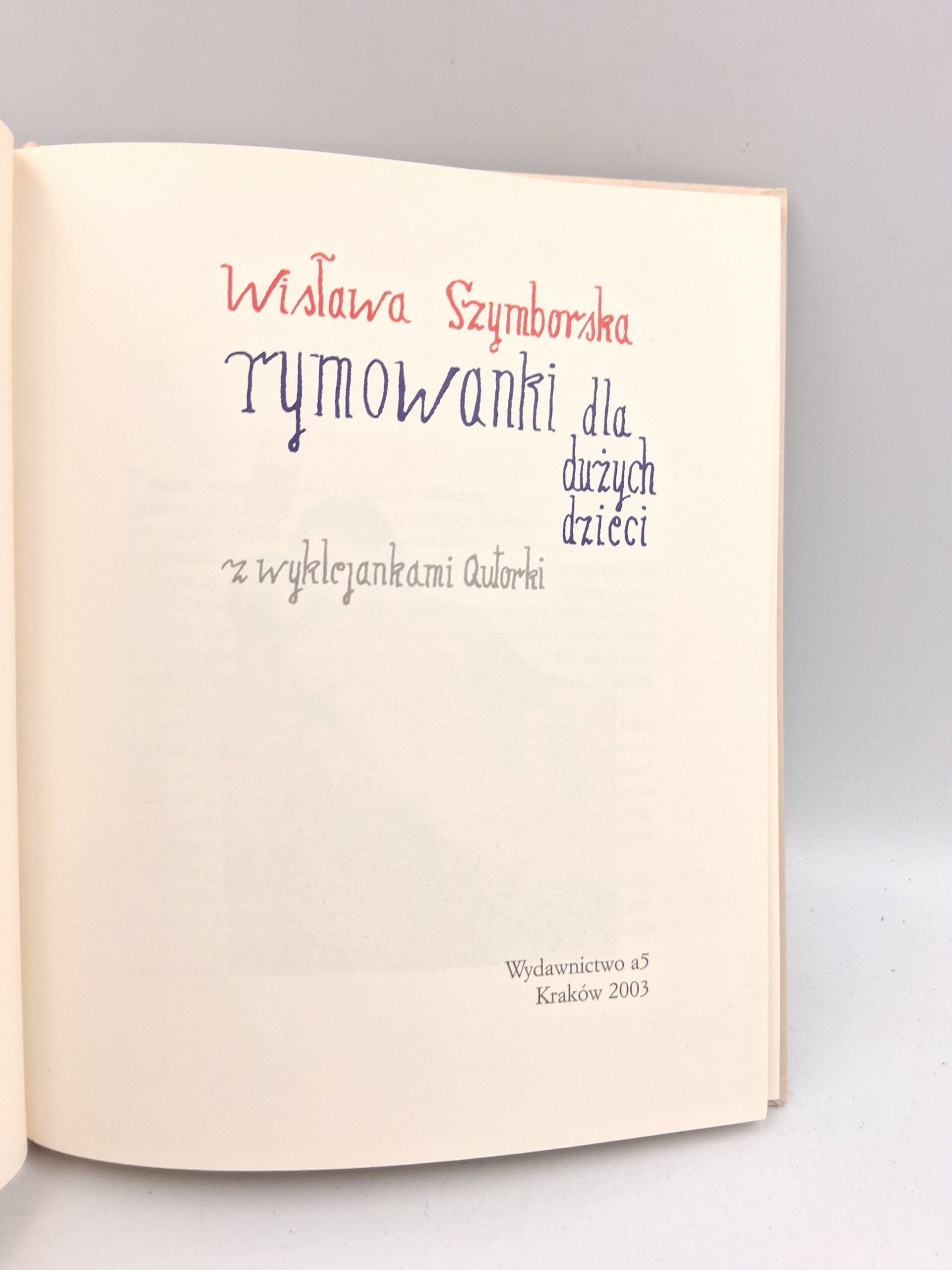 Rymowanki Dla Duzych Dzieci: Z Wyklejankami Autorki (Biblioteka Poetycka Wydawnictwa A5) Wislawa Szymborska