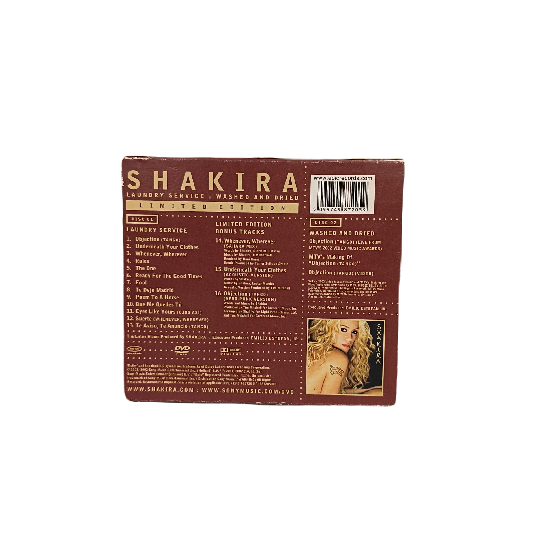 Shakira – „Laundry Service” to album muzyczny w formacie CD, wydany w 2002 roku przez Epic. Nośnik jest używany, jednak w dobrym stanie z niewielkimi rysami lub otarciami, które nie przeszkadzają w odtwarzaniu. Ten dwupłytowy album w gatunku pop zawiera utwory, które zapewnią Ci niezapomniane chwile muzycznej podróży. Waga produktu z opakowaniem jednostkowym to 0,200 kg. Produkty wydane w serii „inna, xcv” oraz EAN (GTIN): 5099749872059.