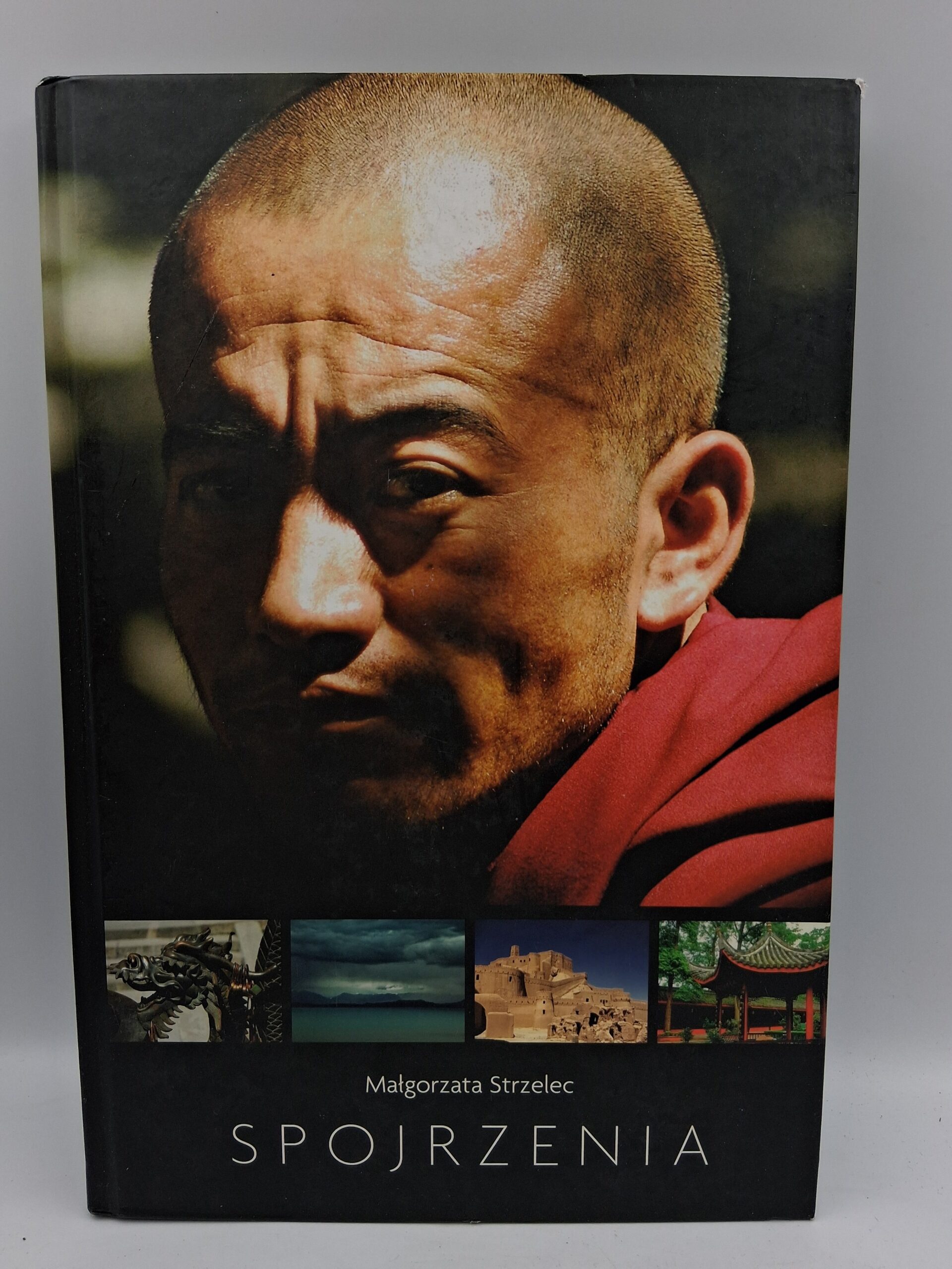 Książka 'Spojrzenia’ autorstwa Małgorzaty Strzelec to zbiór fotografii i refleksji z podróży po Azji, ukazujący różnorodność kulturową i duchową regionu.