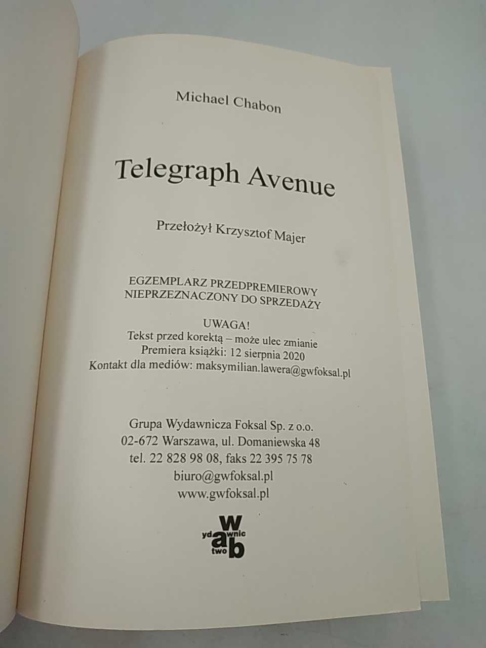 Telegraph avenue – Chabon – Egzemplarz próbny