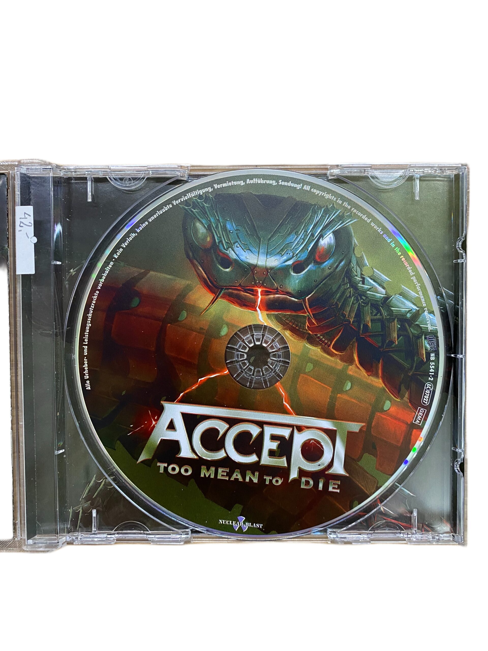 „Too Mean to Die” to album zespołu Accept, pełen energetycznego heavy metalu, który z pewnością zadowoli fanów gatunku. Zawiera wyraziste riffy i potężne wokale, które podkreślają siłę i agresję, charakterystyczne dla twórczości zespołu. Każdy utwór jest dowodem na nieustającą żywotność i kreatywność muzyków, którzy mimo upływu lat wciąż dostarczają niezapomnianych wrażeń słuchowym. To płyta, która przyciąga swoją bezkompromisową mocą i syci głód rockowej adrenaliny.
