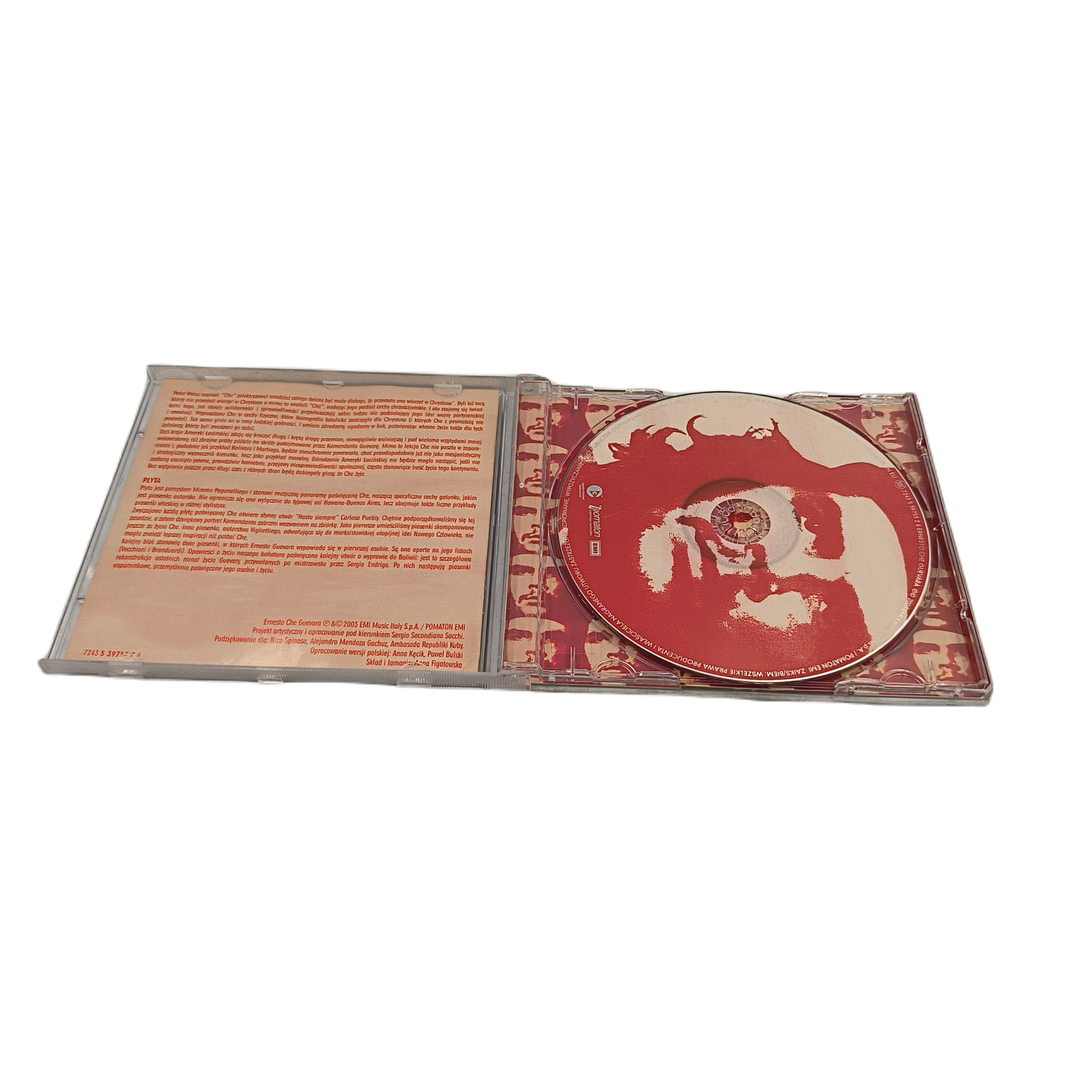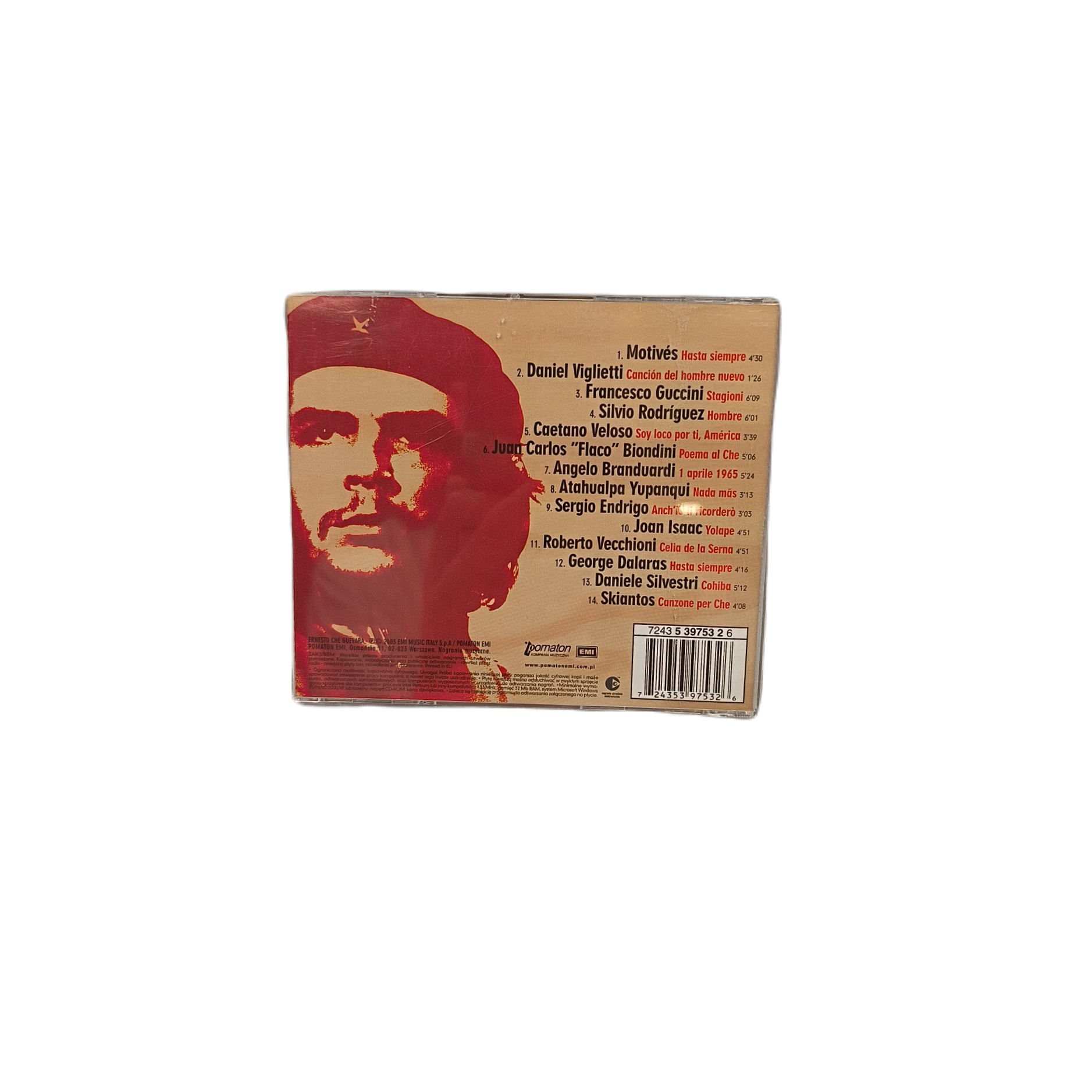 Płyta CD z albumem „Ernesto Che Guevara” to wyjątkowa składanka wykonana przez różnych artystów. Stan nośnika jest używany, jednak jego ogólny stan oceniany jest na 5 – bardzo dobry, mogą występować jedynie drobne ryski powierzchniowe. Wydana w 2003 roku przez wytwórnię EMI Music, ta kolekcja muzyczna przynosi niezapomniane utwory z gatunku składanek. EAN (GTIN): 0724353975326.