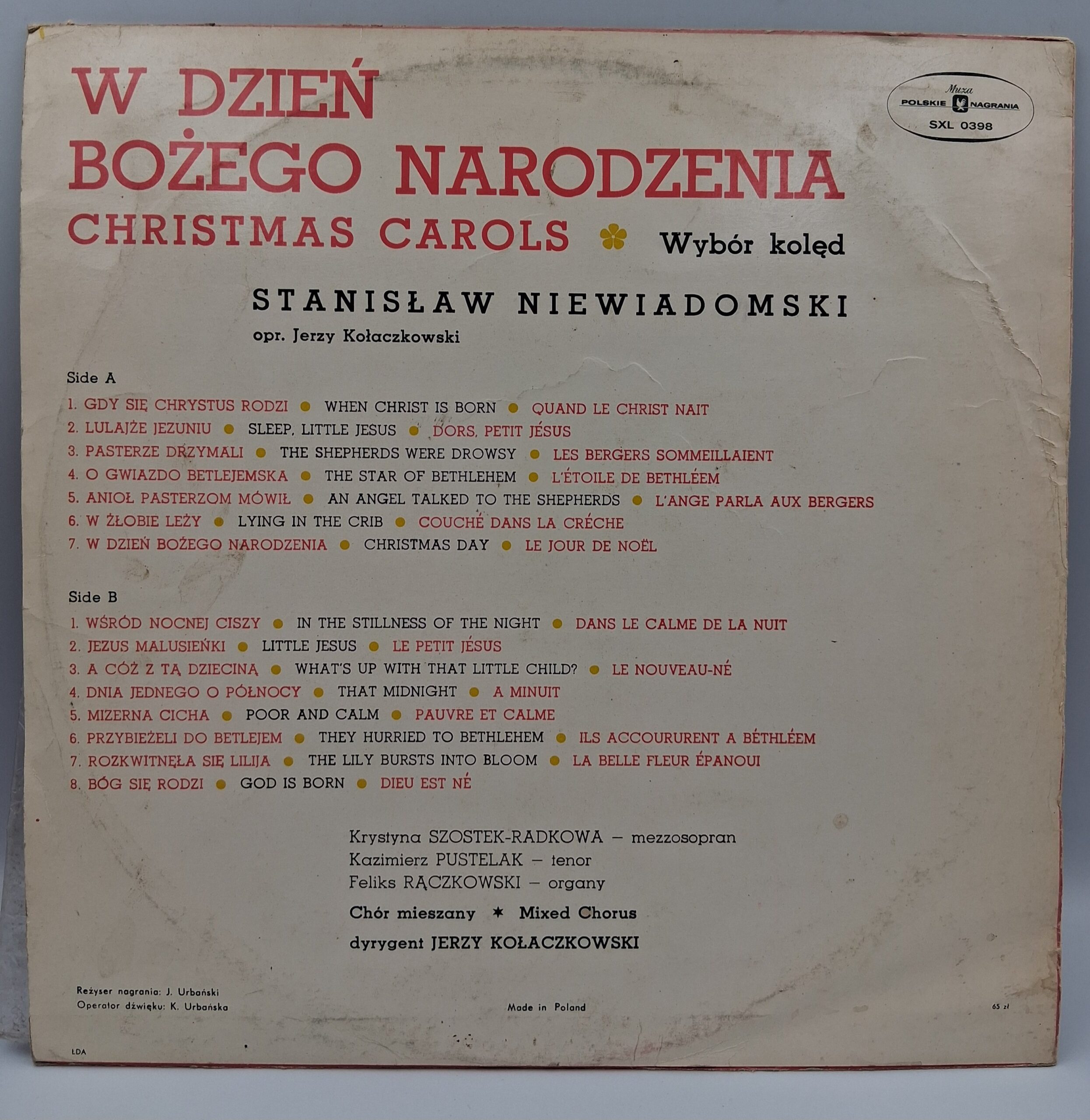 „W dzień Bożego Narodzenia” to winylowa płyta, która wprowadza słuchacza w magiczny nastrój świąt Bożego Narodzenia. Zawiera tradycyjne polskie kolędy, które w niezwykle klimatyczny sposób oddają ducha tego wyjątkowego czasu. Muzyka zawarta na płycie łączy w sobie ciepło melodii z bogactwem polskiej tradycji muzycznej. Idealna propozycja na rodzinne spotkania i chwile refleksji przy świątecznym stole.
