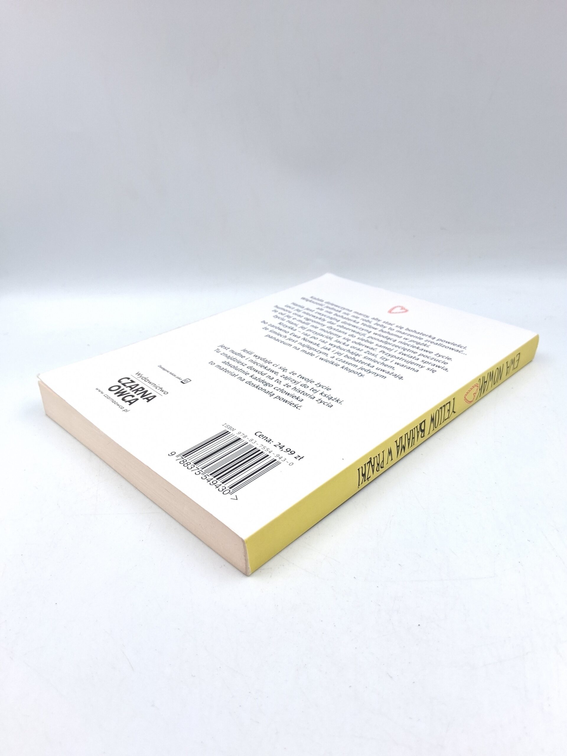„Yellow Bahama w prążki” to pełna humoru i refleksji książka Ewy Nowak, która oparta jest na autentycznych emailach od nastolatek. Główna bohaterka, Hania, mimo swoich przeciętnych doświadczeń, przeżywa codzienne przygody, które wciągają czytelnika. Autorka, z ogromnym poczuciem humoru, pokazuje, że w codziennym życiu mogą kryć się głębokie przemyślenia i cenne lekcje. To lekka, ale jednocześnie wartościowa lektura, która potrafi rozweselić i skłonić do refleksji.