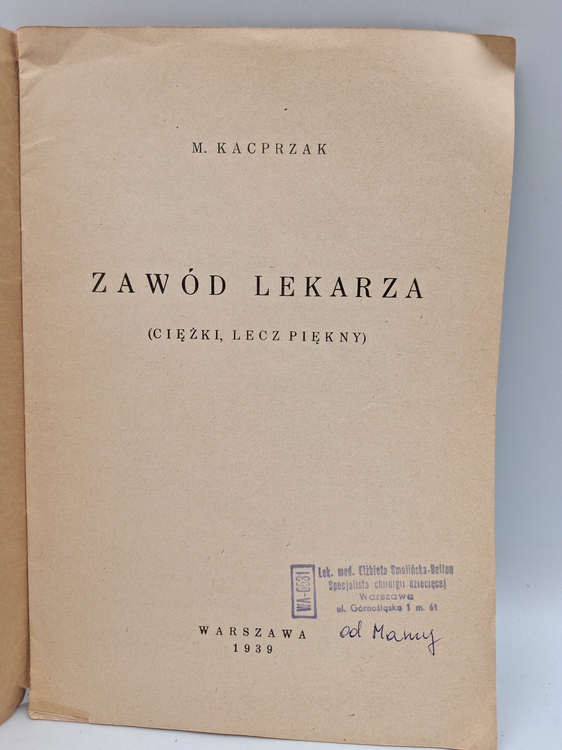 Książka „Zawód lekarza (Ciężki, lecz piękny)” autorstwa M. Kacprzaka, wydana w 1939 roku w Warszawie, to fascynujące studium roli, jaką odgrywają lekarze w społeczeństwie. Autor wnikliwie analizuje wyzwania i piękno związane z tą profesją, przedstawiając ją zarówno jako powołanie, jak i zawodowe zobowiązanie. Praca ta oddaje hołd codziennej pracy lekarzy, ukazując, jak istotny wpływ mają na zdrowie i życie ludzi. To lektura obowiązkowa dla zainteresowanych medycyną i historią zawodu lekarza.