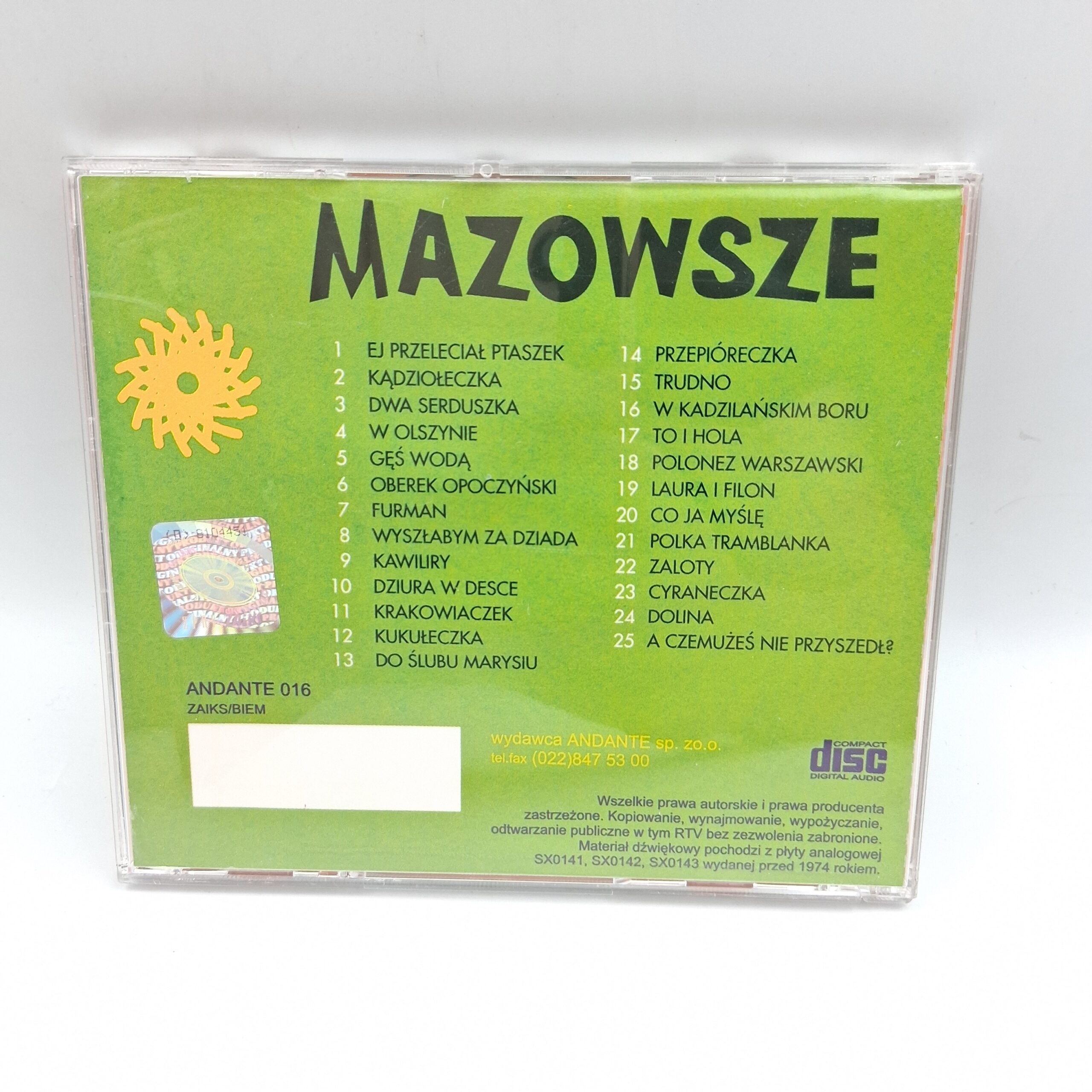 | Opis | Album zawiera tradycyjne polskie pieśni ludowe w wykonaniu zespołu Mazowsze. |